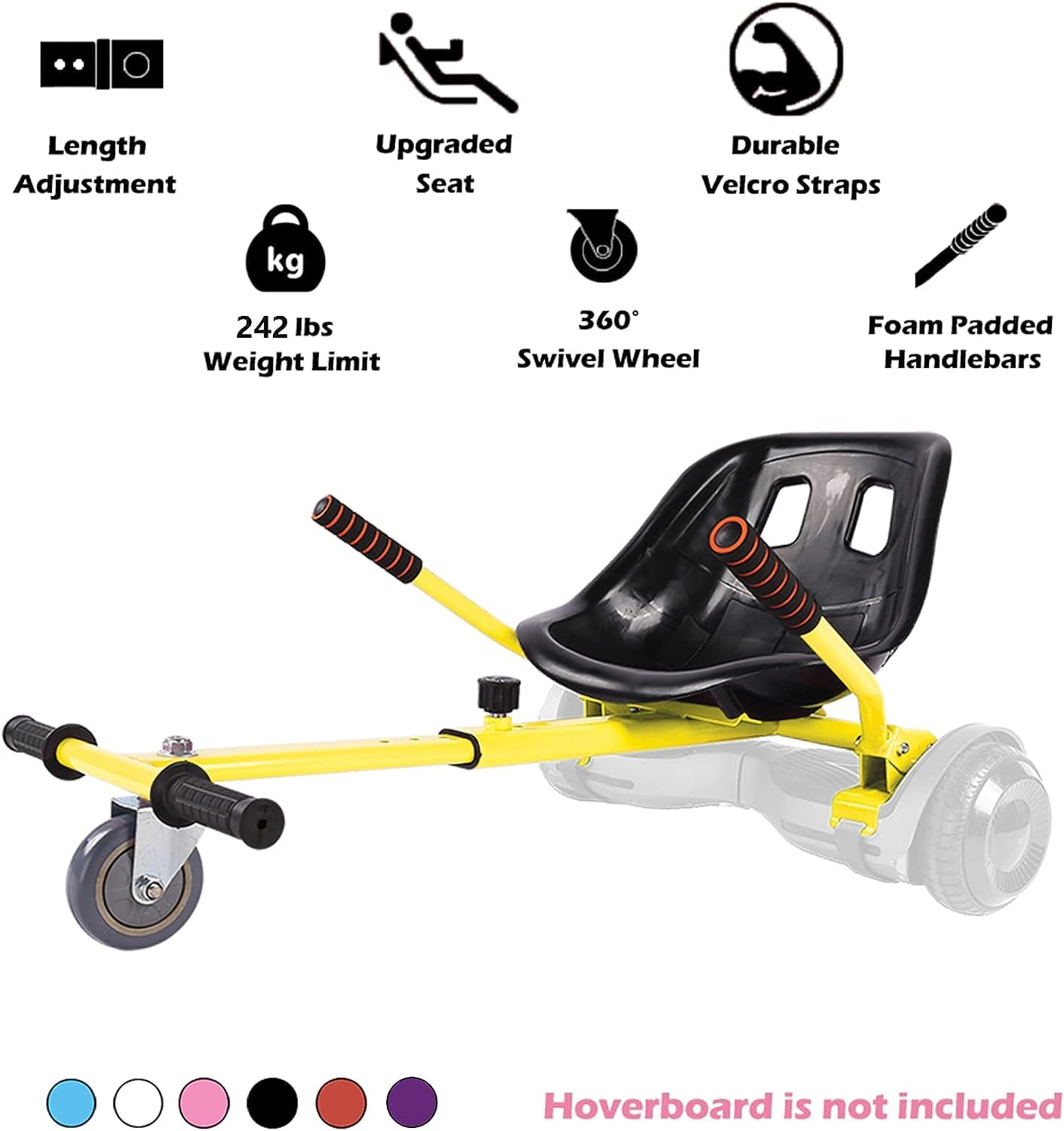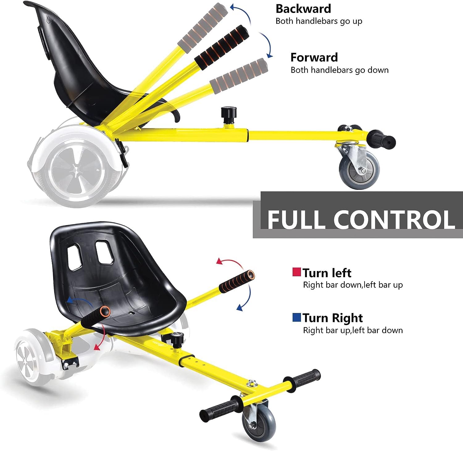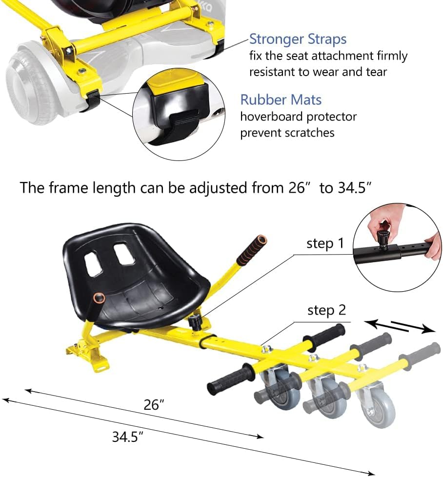 HOLIDAY GIFT IDEA – Hoverboard cart is an awesome gift for kids during Christmas, birthdays, anniversaries and children's day, etc. It’s a more reliable and safe choice for little ones to use a seat attachment instead of standing on the hoverboard. No more worries about falling down and getting injured. Hover go carts will bring kids tons of fun.