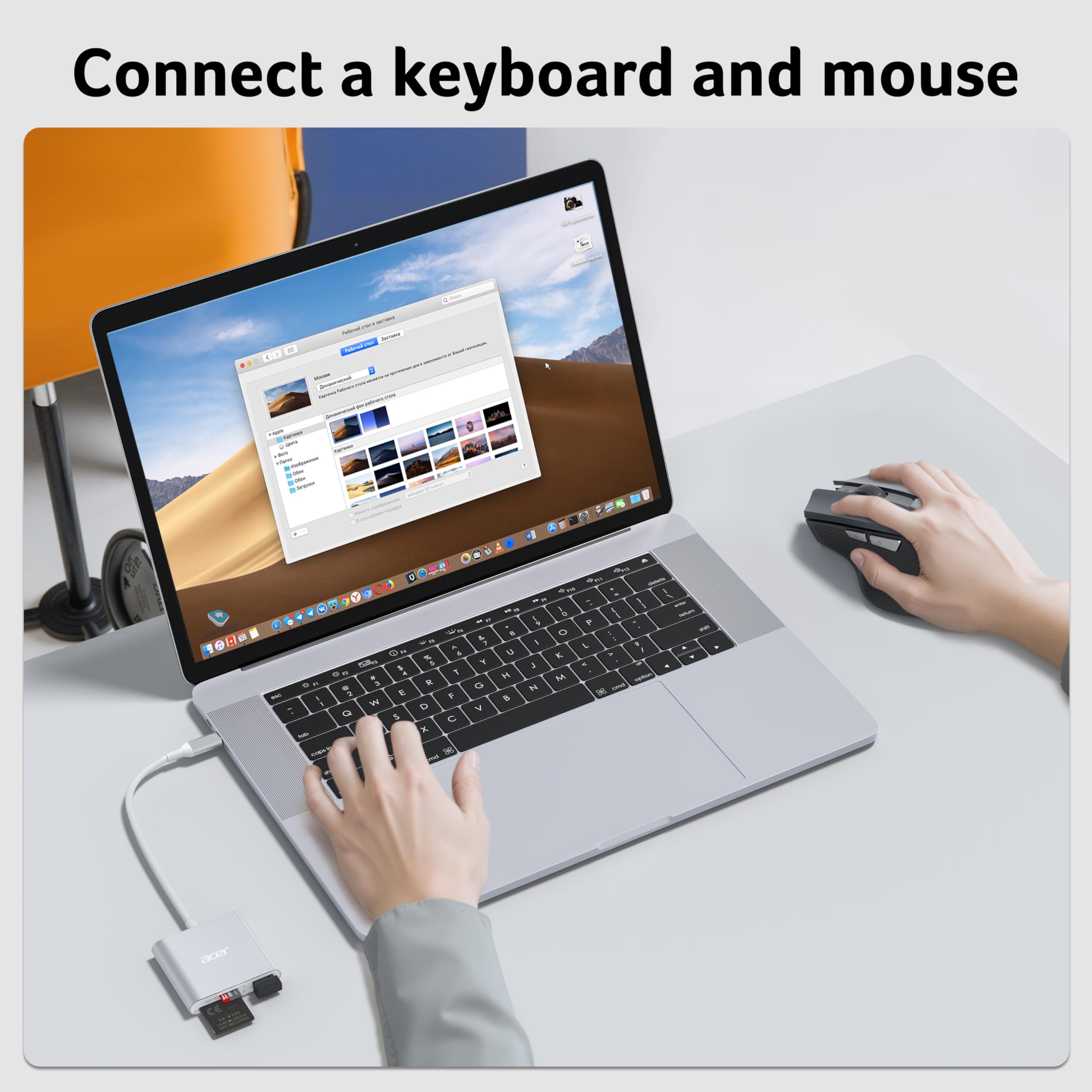 【Versatile USB 3.0 Port】This Memory Card Reader is additionally equipped with a USB 3.0 port, which supports high-speed data transfer and can also seamlessly connect to USB A devices like wireless mouse/keyboard receivers, etc. (📌Note: Not compatible with “Lightning” port devices)