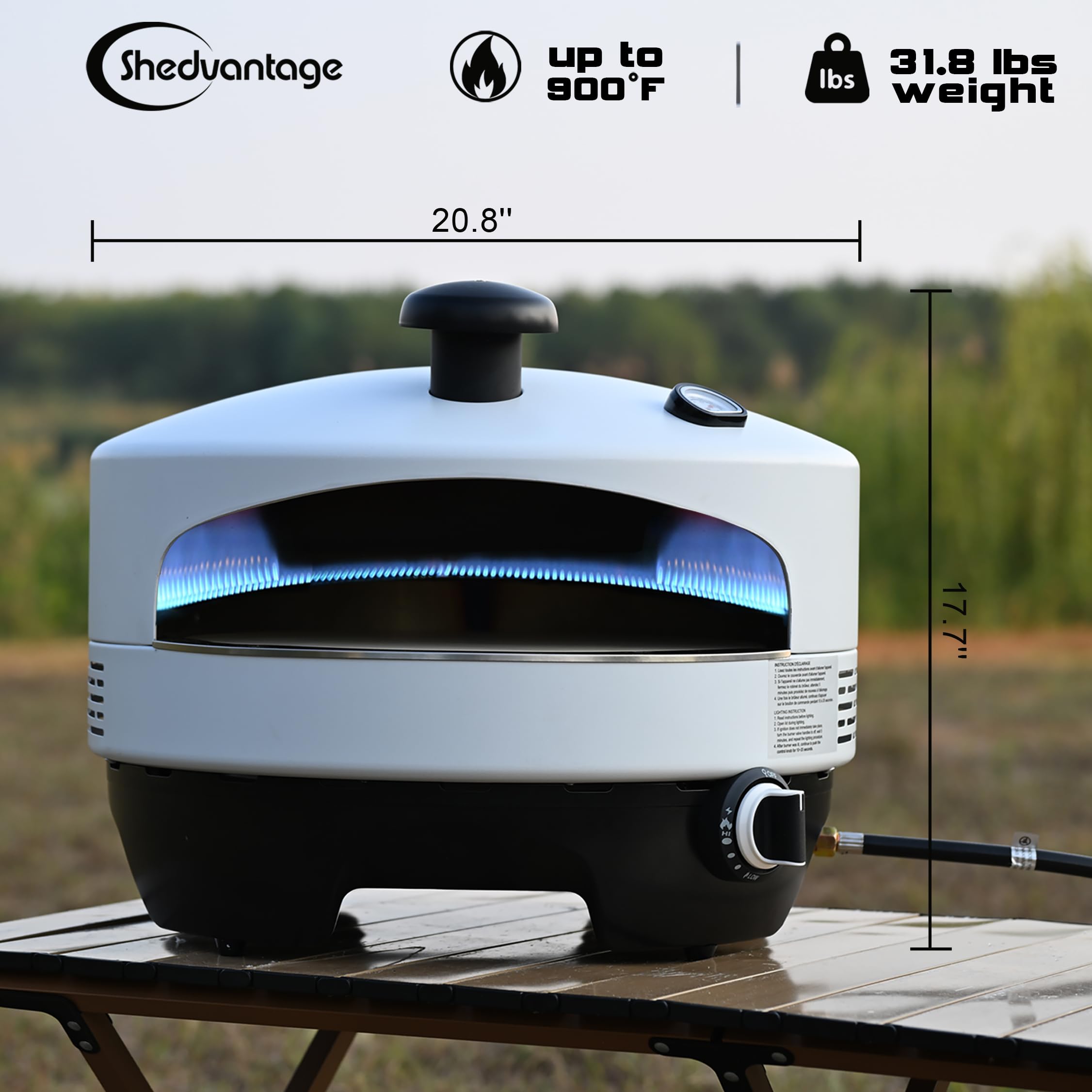 Panoramic Viewing-The wide-mouth design allows for easy pizza monitoringand fast adjustments, reaching temperatures up to 900'F for perfectly cookedpizzas in just minutes.