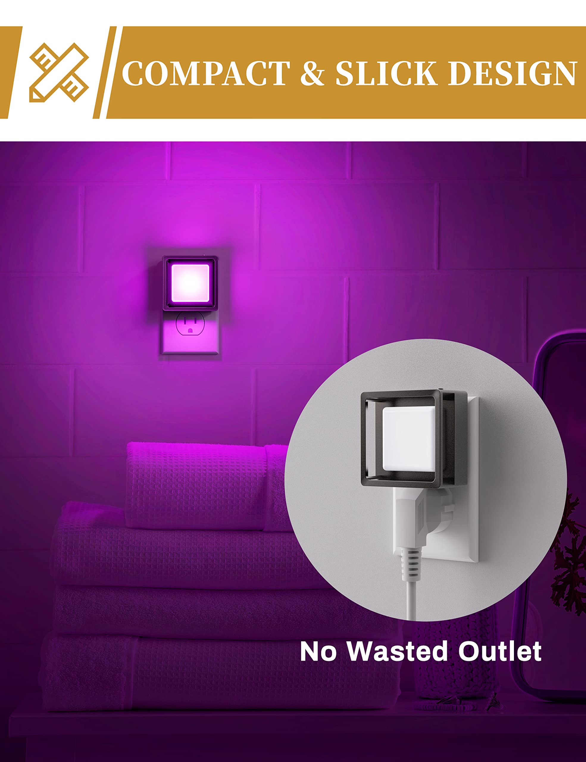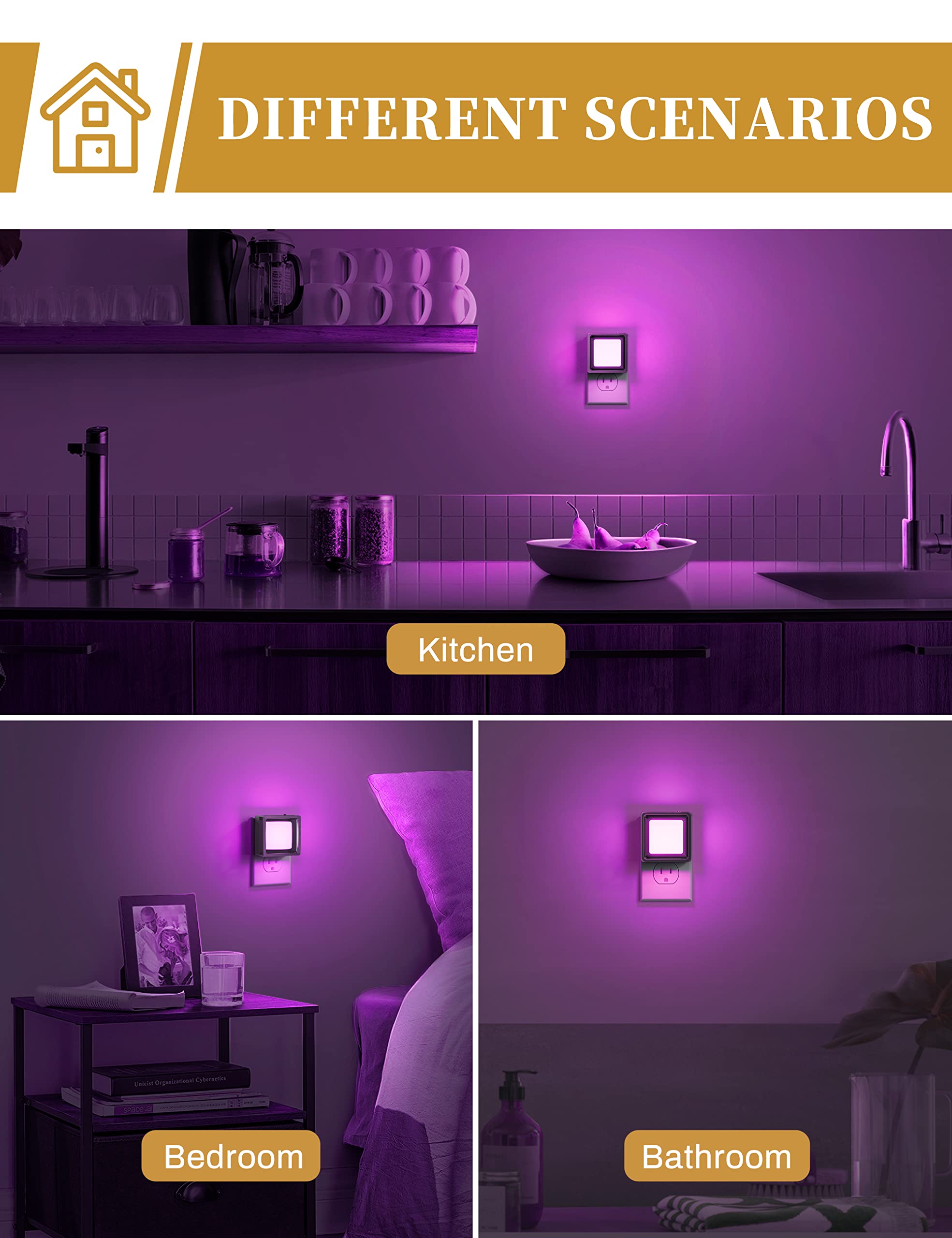 PLUG-IN LED NIGHT LIGHTS: the night light plug in design provides wider brightness in the darkness and gives enough light to guide your way when going to the toilet or getting water in the kitchen at night.