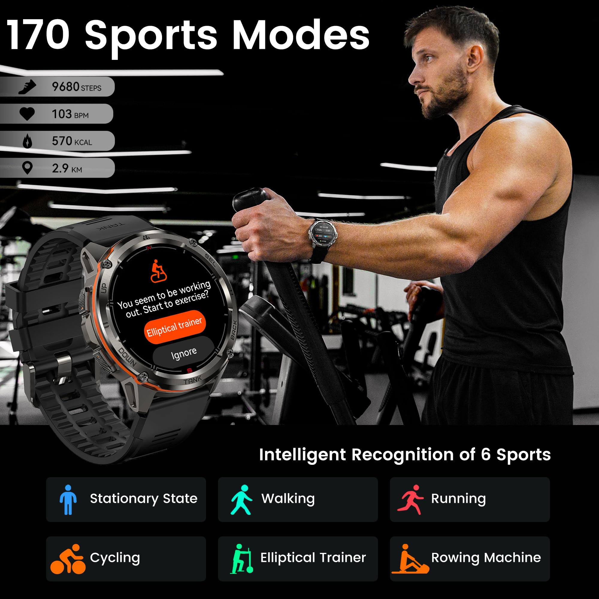 ⌚MILITARY GRADE STANDARD(MIL-STD-810H) STAINLESS STEEL BODY - AMAZTIM T3 Ultra smart watch features Corning Gorilla screen, Mohs hardness up to 9H, it's strong enough to deal with a range of screen-destroying behaviors. Military-grade Stainless Steel materials make it indestructible and most durable. Successfully passed 15 military tests of the highest military toughness standard (MIL-STD-810H), including salt spray, rain, impact, etc. It can easily face any harsh environment.