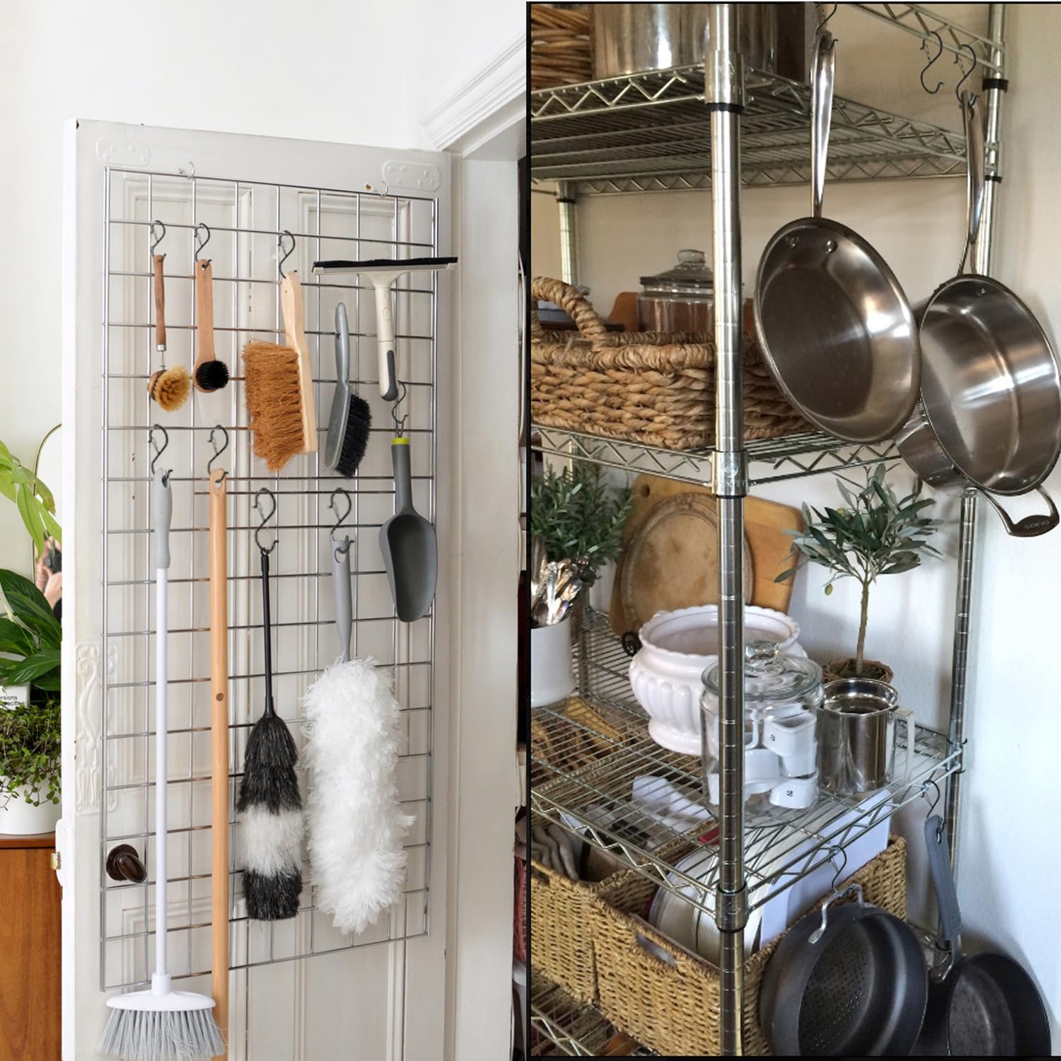 EASY TO USE: Both sides can be used to hang items to meet your different needs. You can use the S-Hooks to hang pots and pans on storage racks, hanging planters for indoor plants, hanging Bird Feeders for outdoors, hanging jean on wire closet shelving, hanging bags on wire closet organizers, hanging utensils on charcoal grills, hanging picture frames on Wire Grid Stackable Storage Shelves, and can also be used hanging bath towels on shower racks.