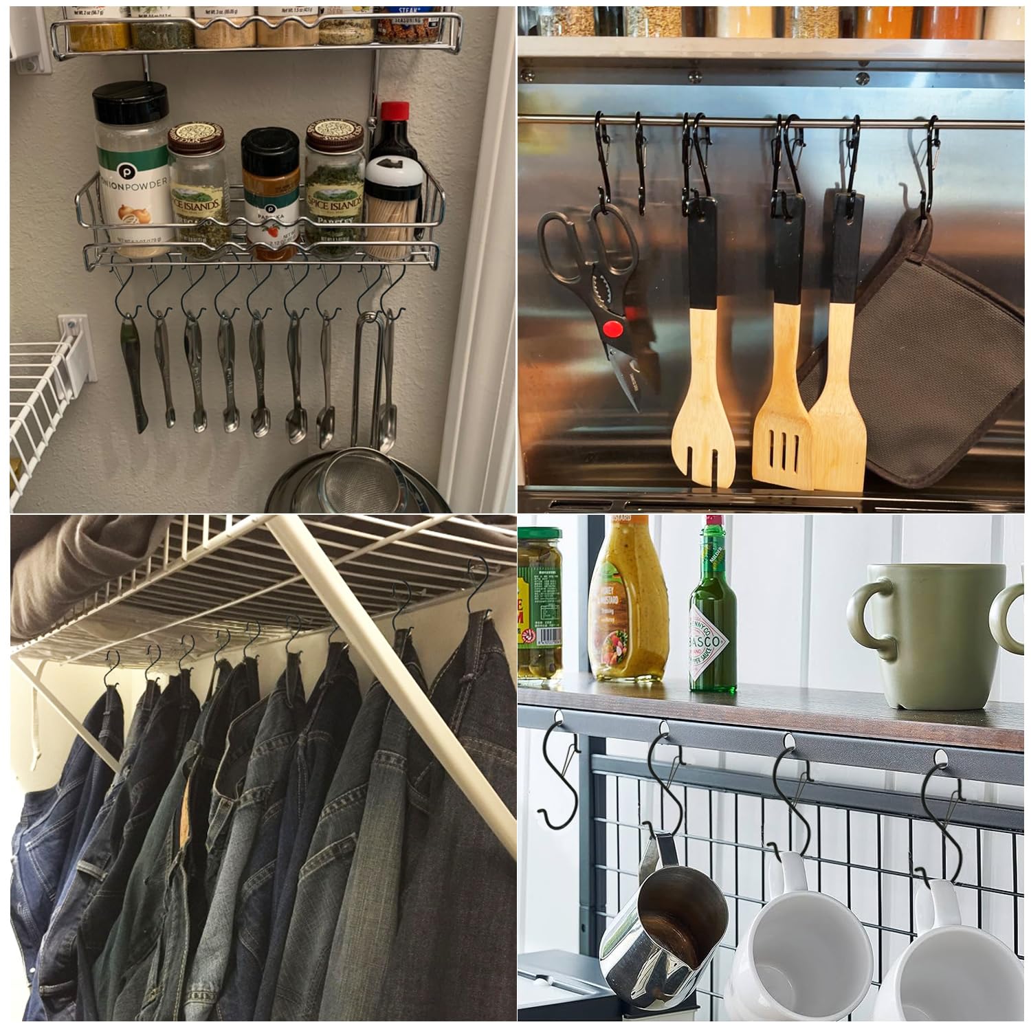 Safety Buckle Design: The unique locking clip design helps the hook not fall accidentally, making it more comfortable and convenient for you to use. Our products are only suitable for small-diameter rods. Although small-diameter rods can also be hung with S Hooks with large openings, they are easy to shake and fall when taking things out. Our product S Hooks is designed for small-diameter rods and has a special safety buckle, so you don’t have to worry about being cautious when taking things out. Suitable for hanging Pot, Cup, Coffee Mug, Jean on Metal Racks. Please note that the hooks do not fit on standard closet rods.