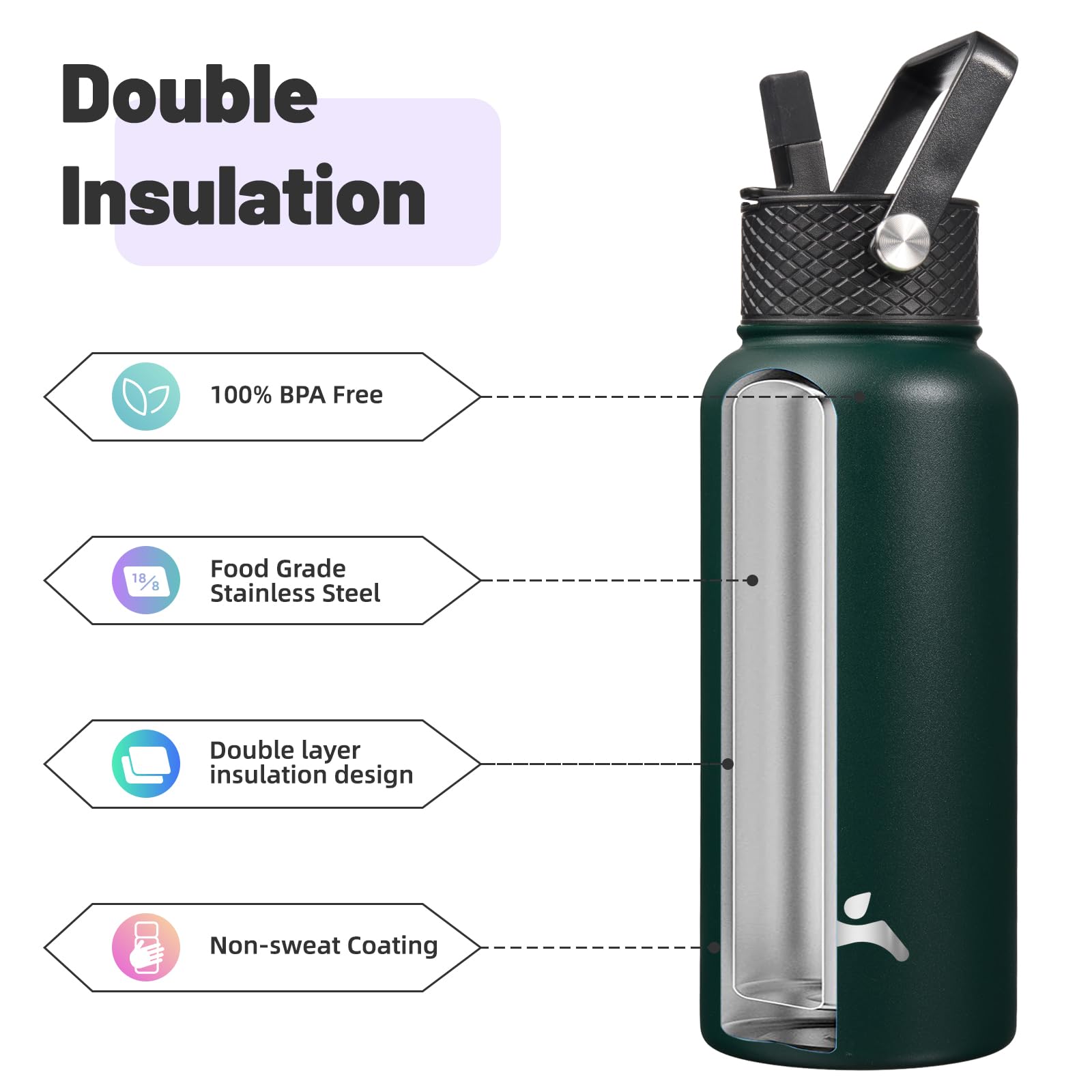 Enjoy a dry grip without any unwanted condensation on the bottle's non-sweat surface. Easy-to-carry design makes it perfect for on-the-go use, the insulated water bottle with straw is a must-have for your daily routine