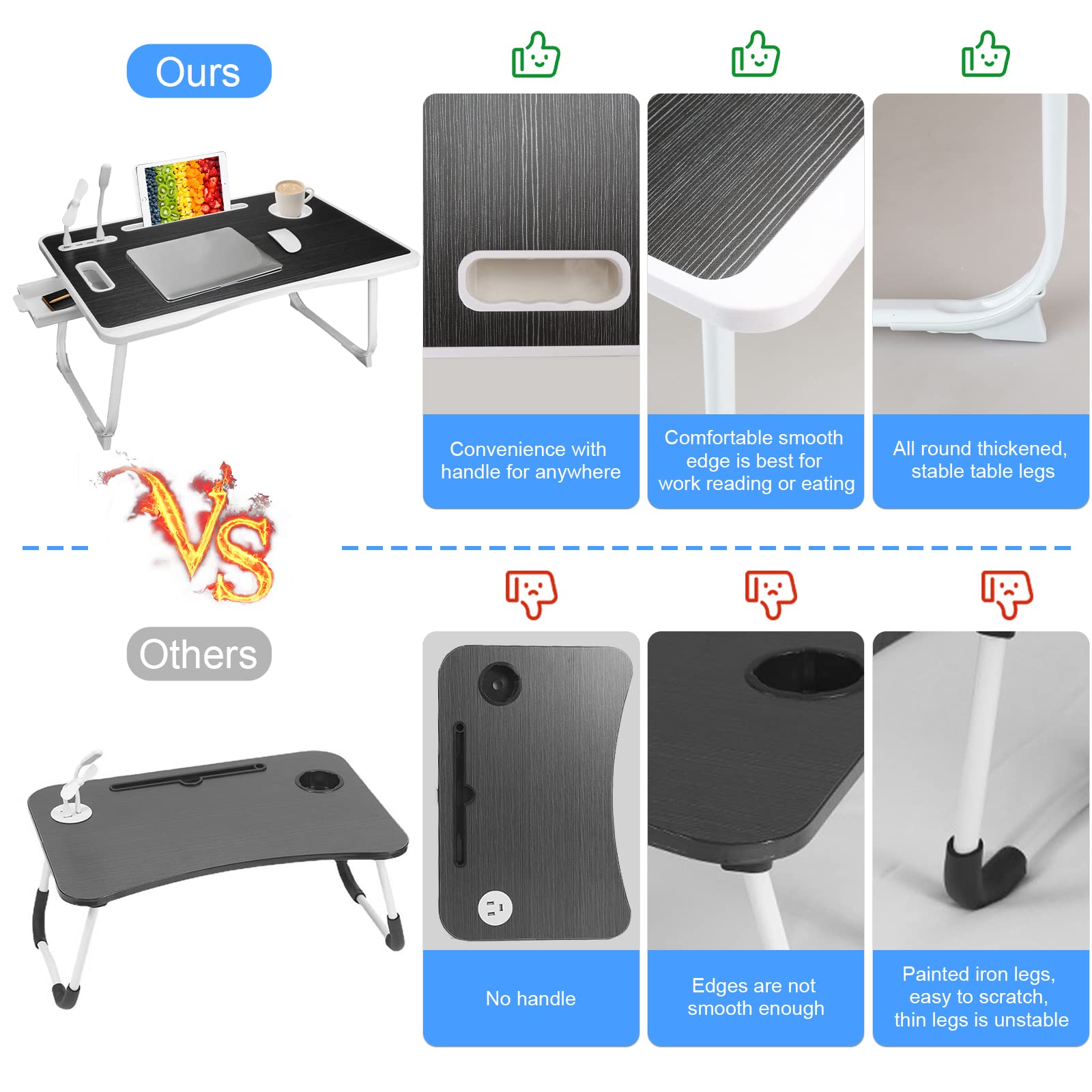 【Multifuntional Laptop Stand for Bed】-Portable laptop bed tray is equipped with side drawer, desktop card slot and cup holder. Suitable for relaxing in bed, or a book / tablet stand, eating breakfast, reading, watching movie on bed or sofa.