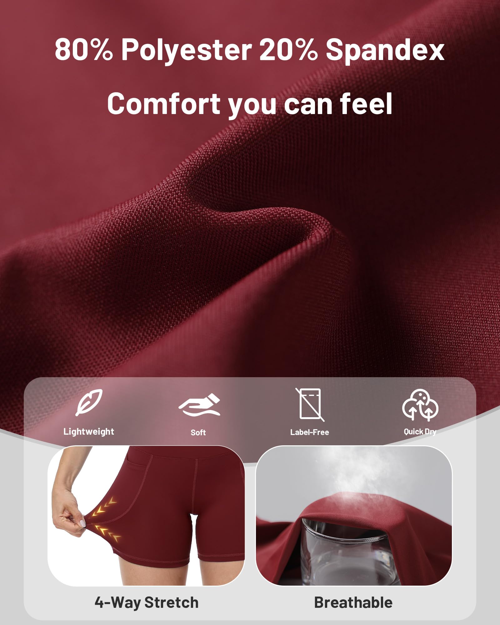 Breathable & Stretchy Fabric: Made with 80% polyester and 20% spandex, these womens biker shorts offer a silky-soft feel, stretch, moisture-wicking, and breathability for ultimate comfort during workouts