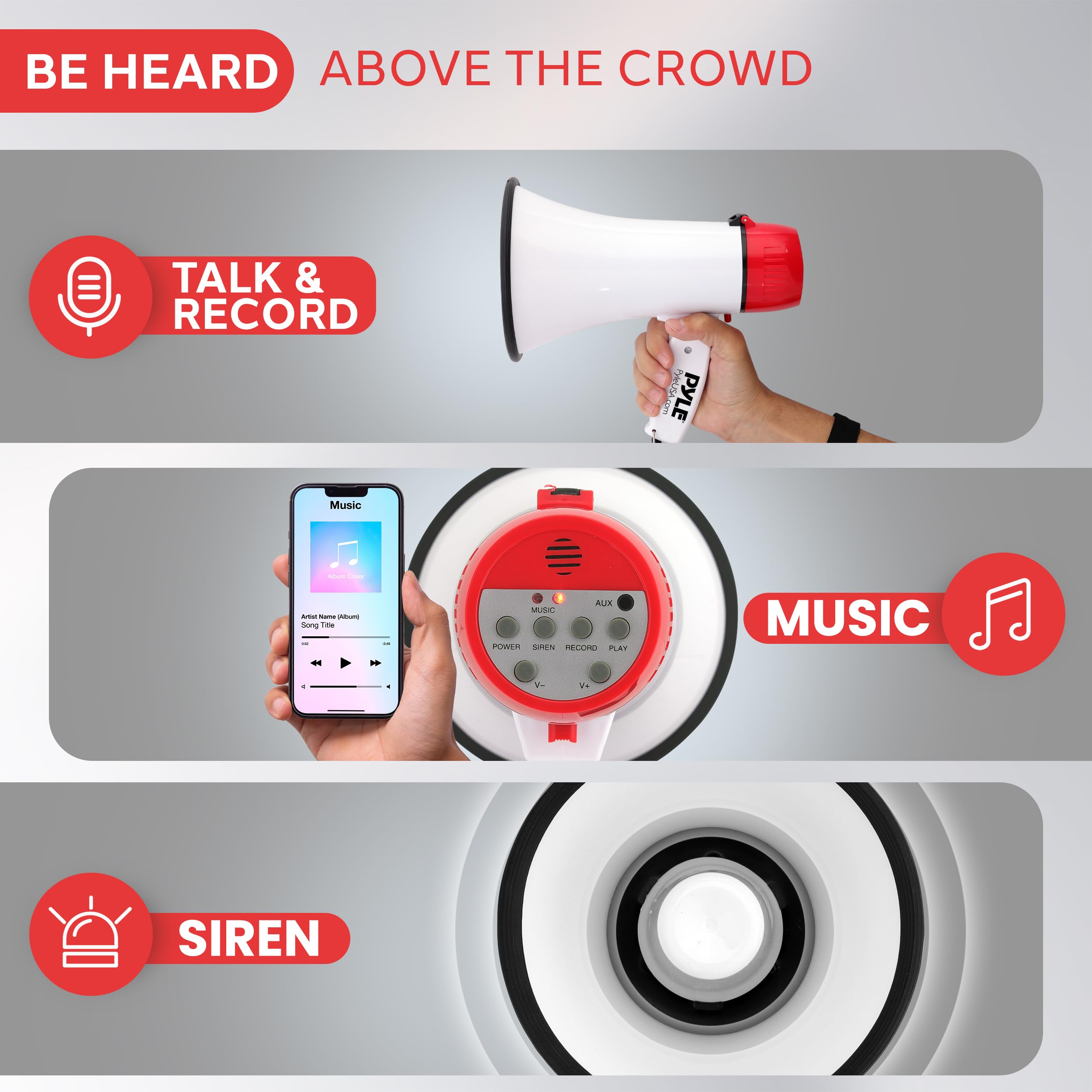 SMART DEVICE CONNECTIVITY - With the ability to connect external devices like smartphones and tablets, this bullhorn lets you stream MP3 and digital audio files, adding versatility to your announcements and alerts.