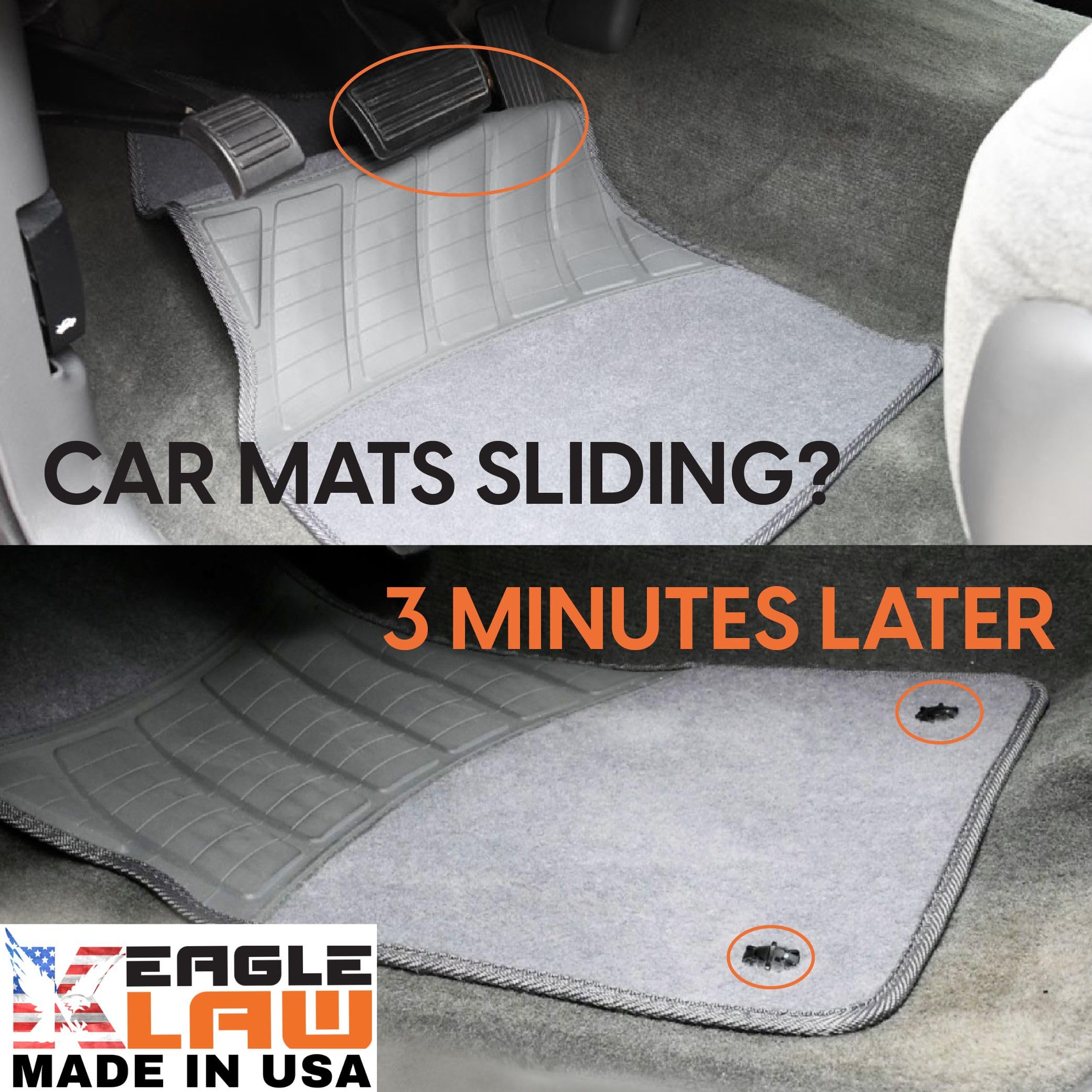 FASTEN YOUR CAR MAT IN 3 MINUTES. Use a cutter if the floor mat doesn’t have holes or grommets. All you have to do to install Eagle Klaw is Step on It!
