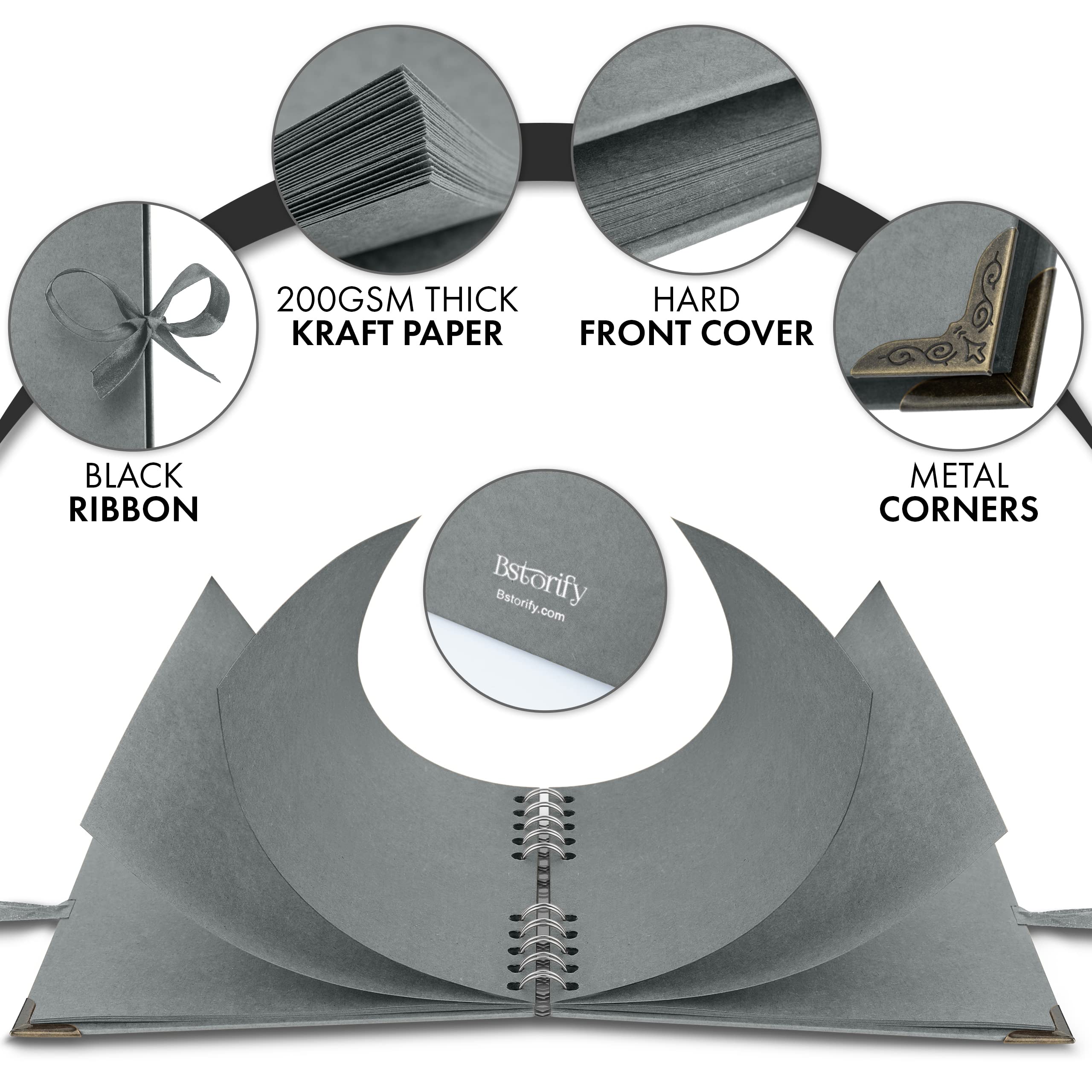 The spiral bound spine allows the scrap book to expand to fit in your photos, postcards, souvenirs. You can tie the ribbon into a bow or other style that you like and make your photo album scrapbook as individual as your memories and keep them endlessly