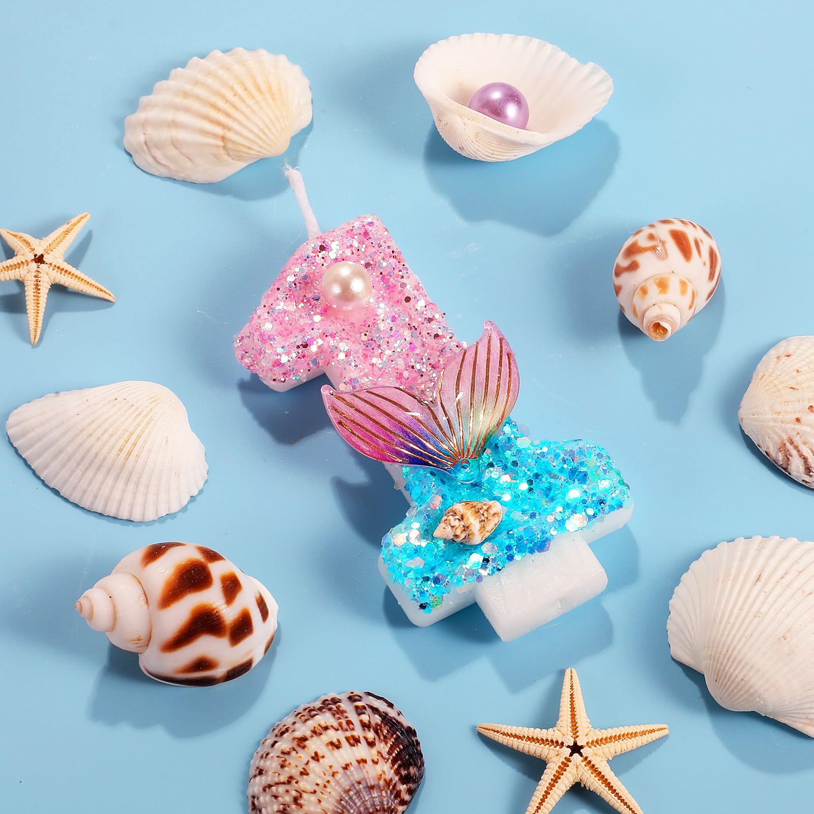 Magical Mermaid Design – Make a splash with these stunning number candles, adorned with shimmering pink & blue glitter, delicate fishtails, and conch shell accents! Perfect for mermaid-themed parties, ocean celebrations, or anyone who loves a touch of underwater fantasy.