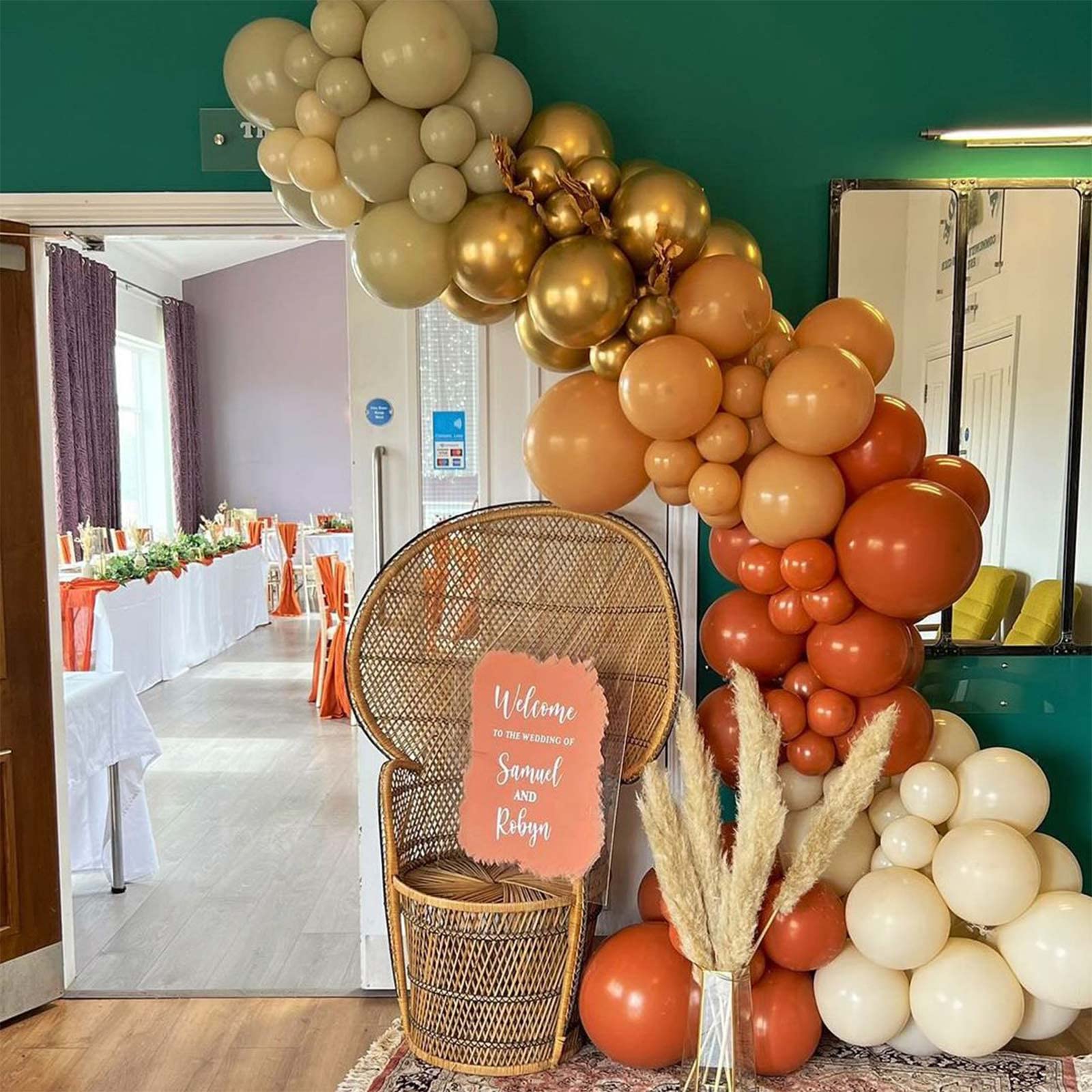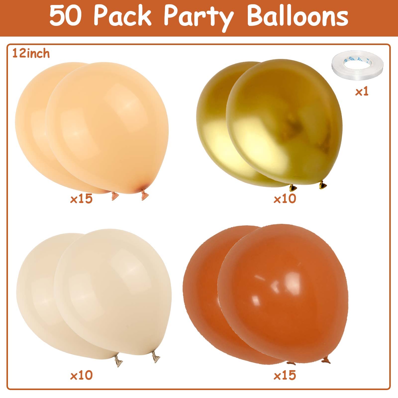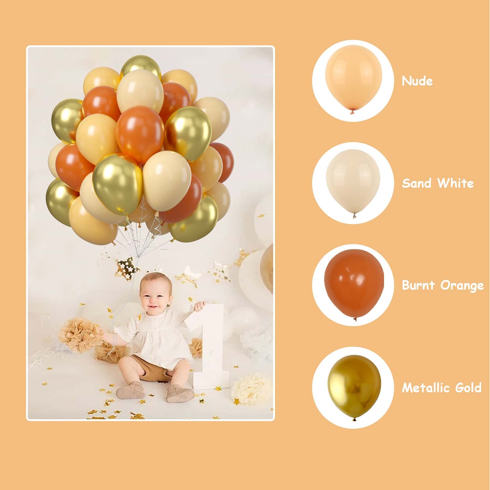 🎈 Burnt Orange Cream Nude Balloons Set - The balloon kit has beautiful 12inch balloons in 4 different colors: 15pcs burnt orange balloons, 10pcs nude apricot balloons, 15pcs cream sand white balloons, 10pcs metallic gold balloons and 1pc orange balloon ribbon. To make your party most memorable. Vibrant colors add to the party's color theme, which can catch the attention of people and take as a photo props, giving your guests a surprise and impressive party.