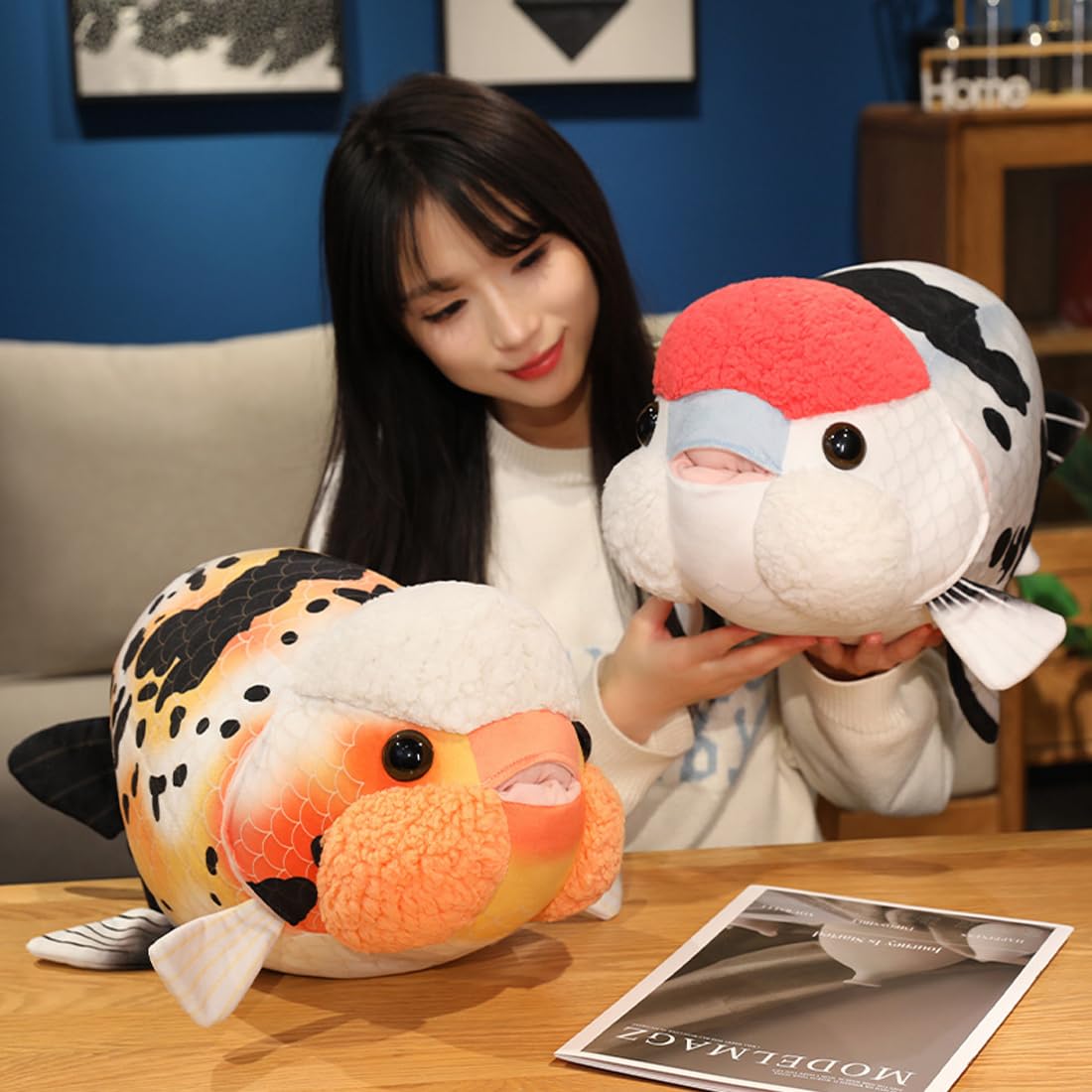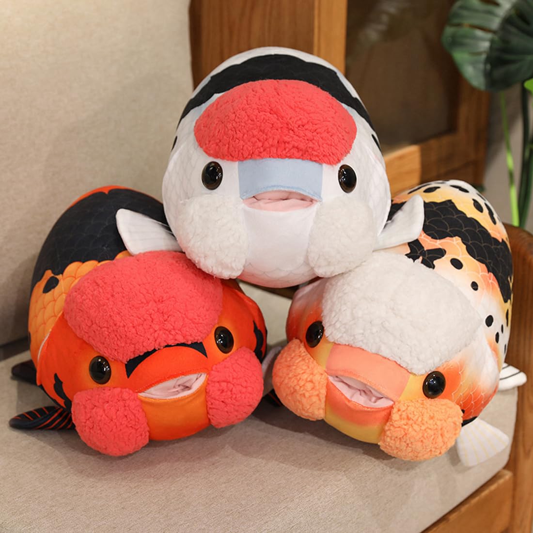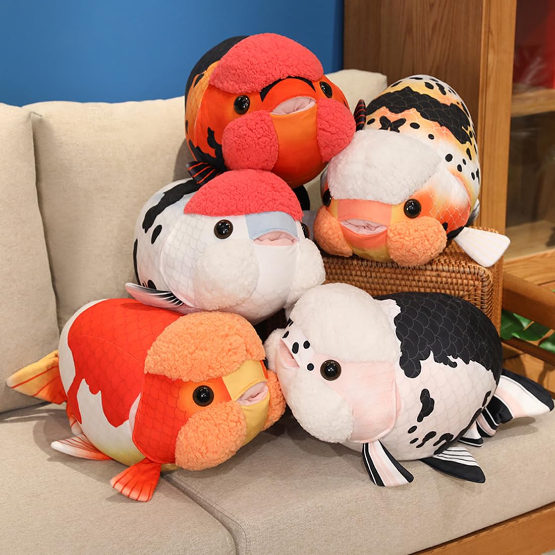 đăSize & Coloră- Simulation plush ranchu goldfish pillows measures 19.6inch, are available five colors. Can be used as a pillow, which will make you more comfortable and safe when you are relaxing and working.
