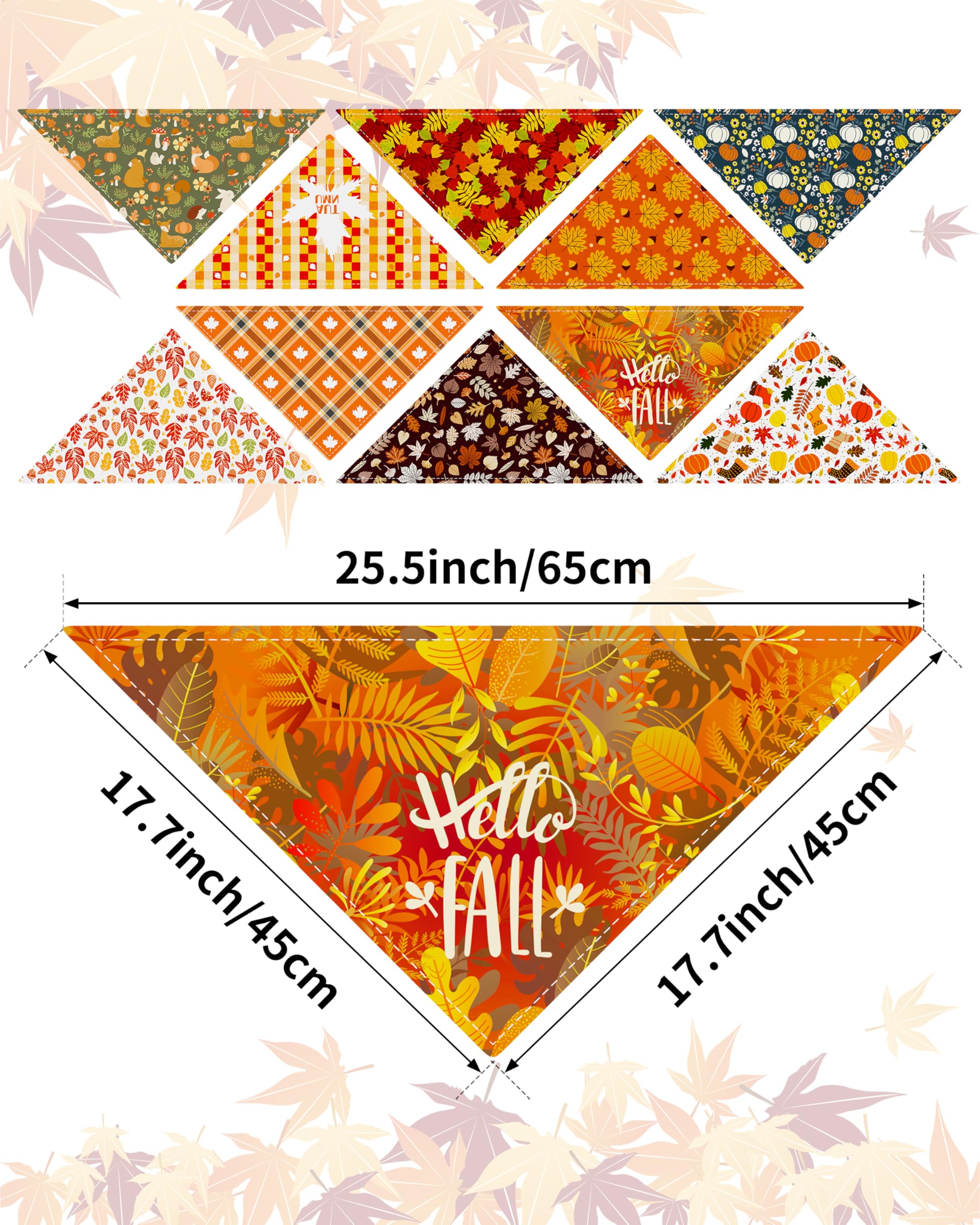 Size: The fall puppy bandana is about 25.6 x 17.7 x 17.7 inch, suitable for most small medium dogs and cats. They can be folded multiple times to fit the size of small pets, please carefully measure your pet's neck circumference before purchasing and leave room to tie knot