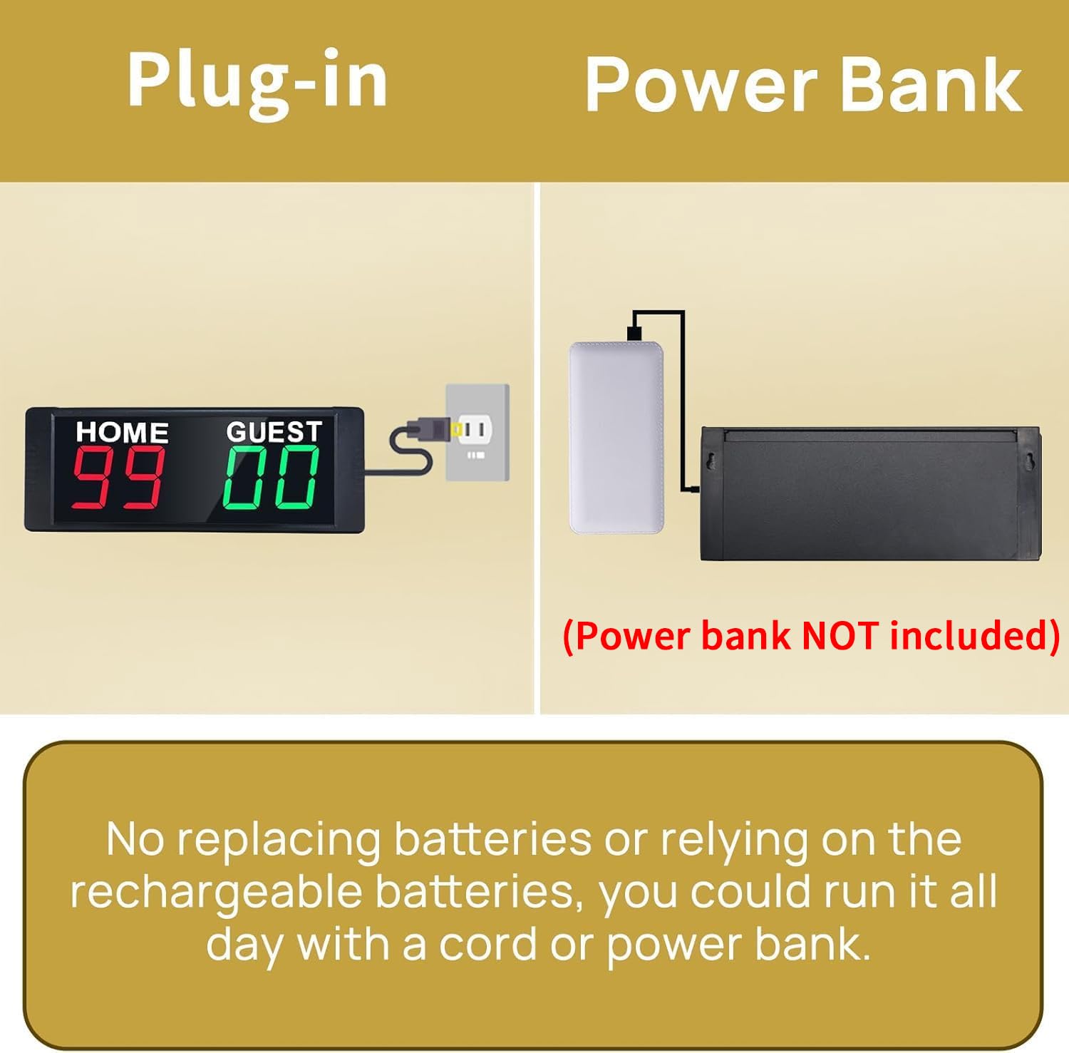 🥇【Clear & Bright】 Different from traditional flip scorebard, YZ scoreboard is designed and made by bright LED, 33ft Visibility and 5-levels brightness adjustment. Red and green two-color design make it easier to distinguish between home and guest teams.