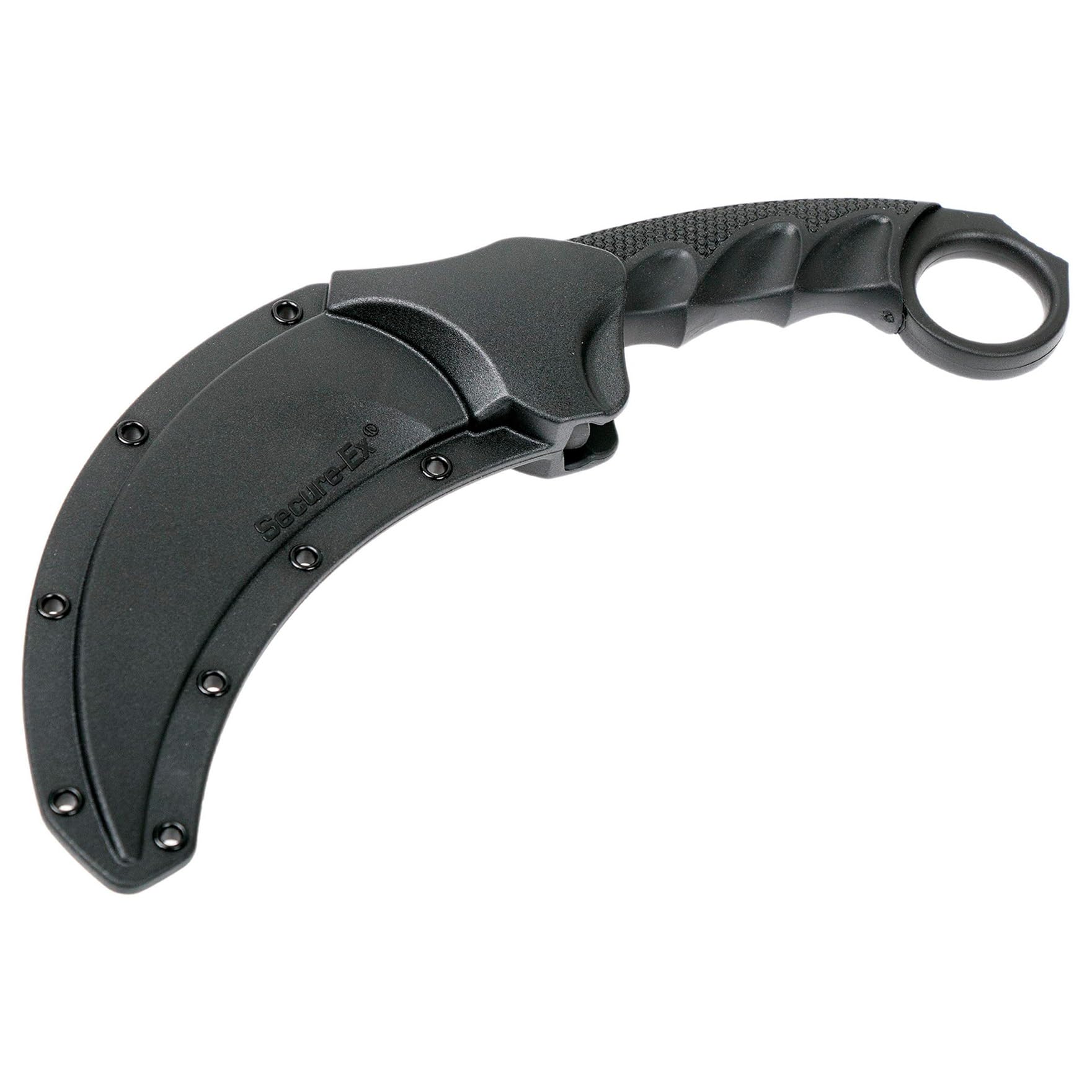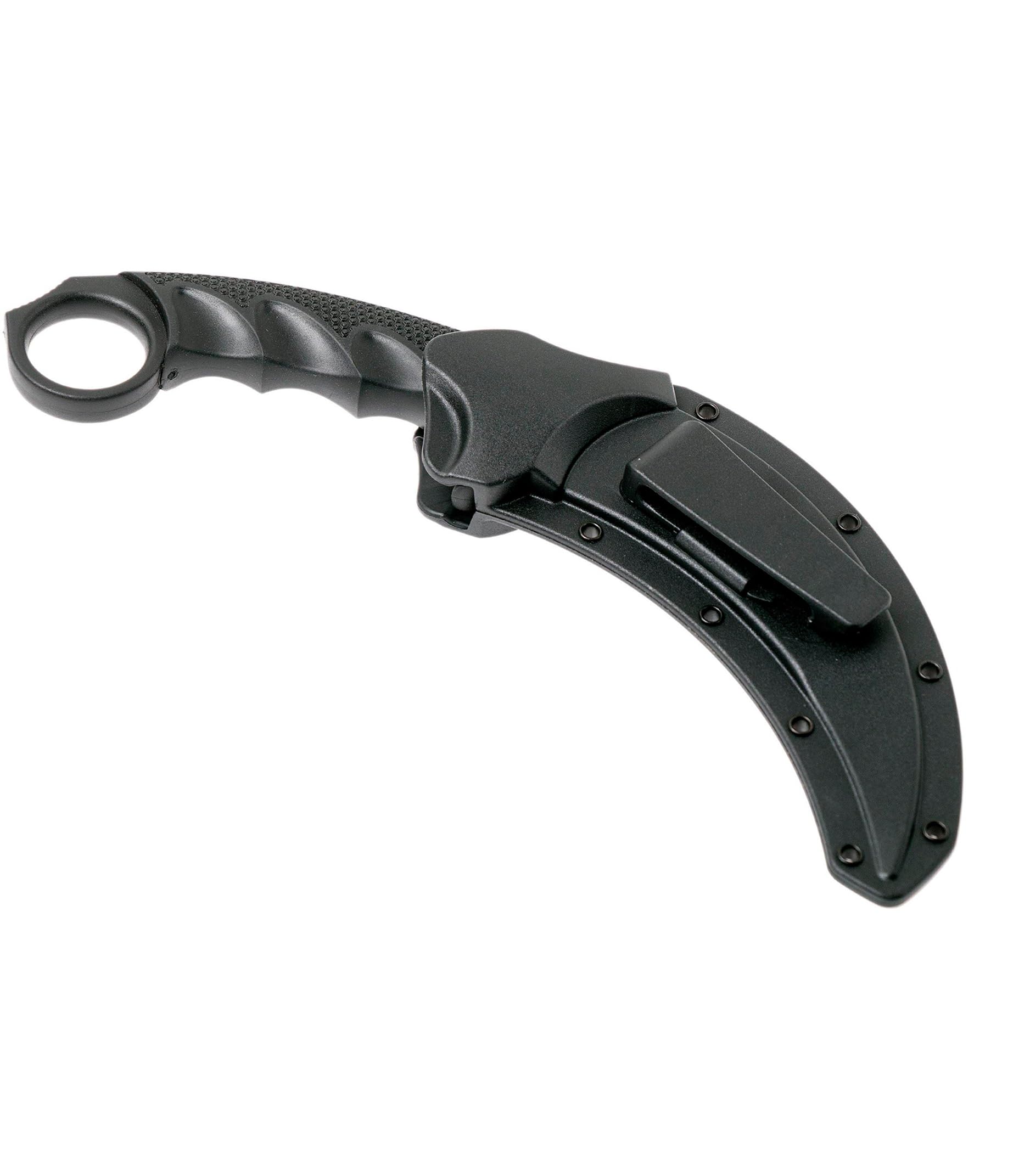 COLD STEEL STEEL TIGER 4-3/4" KNIFE (CS-49KST): The Steel Tiger outdoor knife is a contemporary, tactical rendition of the legendary Indonesian Karambit, expertly crafted through a collaboration between Lynn C. Thompson and renowned knife maker Steven Likarich. This fixed blade is designed to capture the essence of the classic hooked blade while enhancing it with high-grade materials and a sleek, powerful design. The deeply curved stainless steel blade, expertly stone-wash finished, is vacuum heat-treated and sub-zero quenched for outstanding strength and edge retention. This knife from Cold Steel is an exceptional choice for tactical enthusiasts and collectors alike. Featuring a taper-ground, razor-sharp AUS 8A stainless steel blade, the Steel Tiger is built for optimal cutting power, performance, and edge retention. Its needle-sharp, curved blade combines traditional Indonesian design with advanced heat treatment for unparalleled strength. A durable Griv-Ex handle, encased in a premium Kray-Ex overmold, ensures a superior, non-slip grip that stays steady even in wet or cold conditions. For safety and ease of access, the Steel Tiger comes with a robust Military-style Secure-Ex sheath.