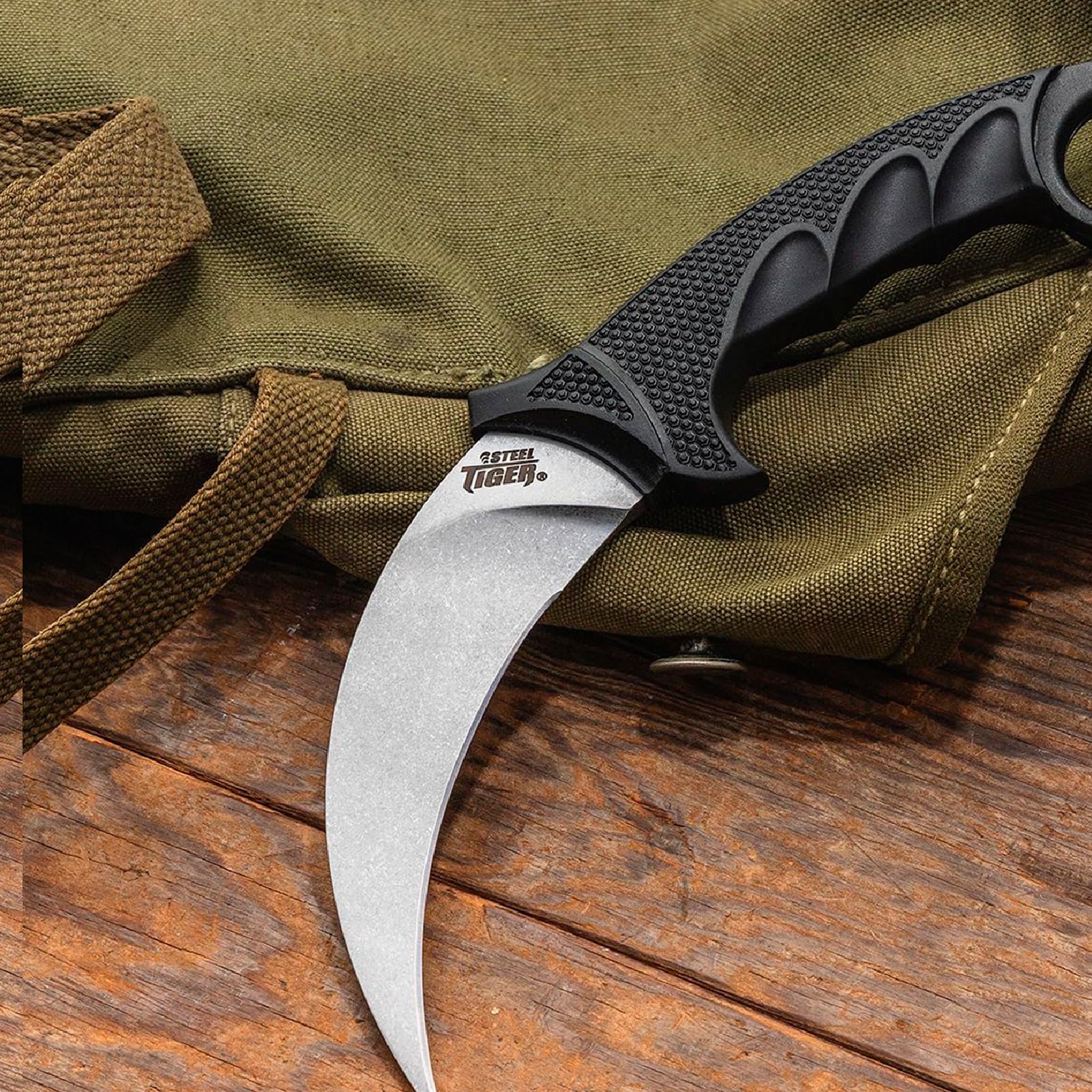 STEEL TIGER - The Steel Tiger knife is a thoroughly modern tactical interpretation of the Indonesian Karambit; The Steel Tiger was designed to possess all the best features of this iconic hooked blade and to integrate them with modern materials & styling