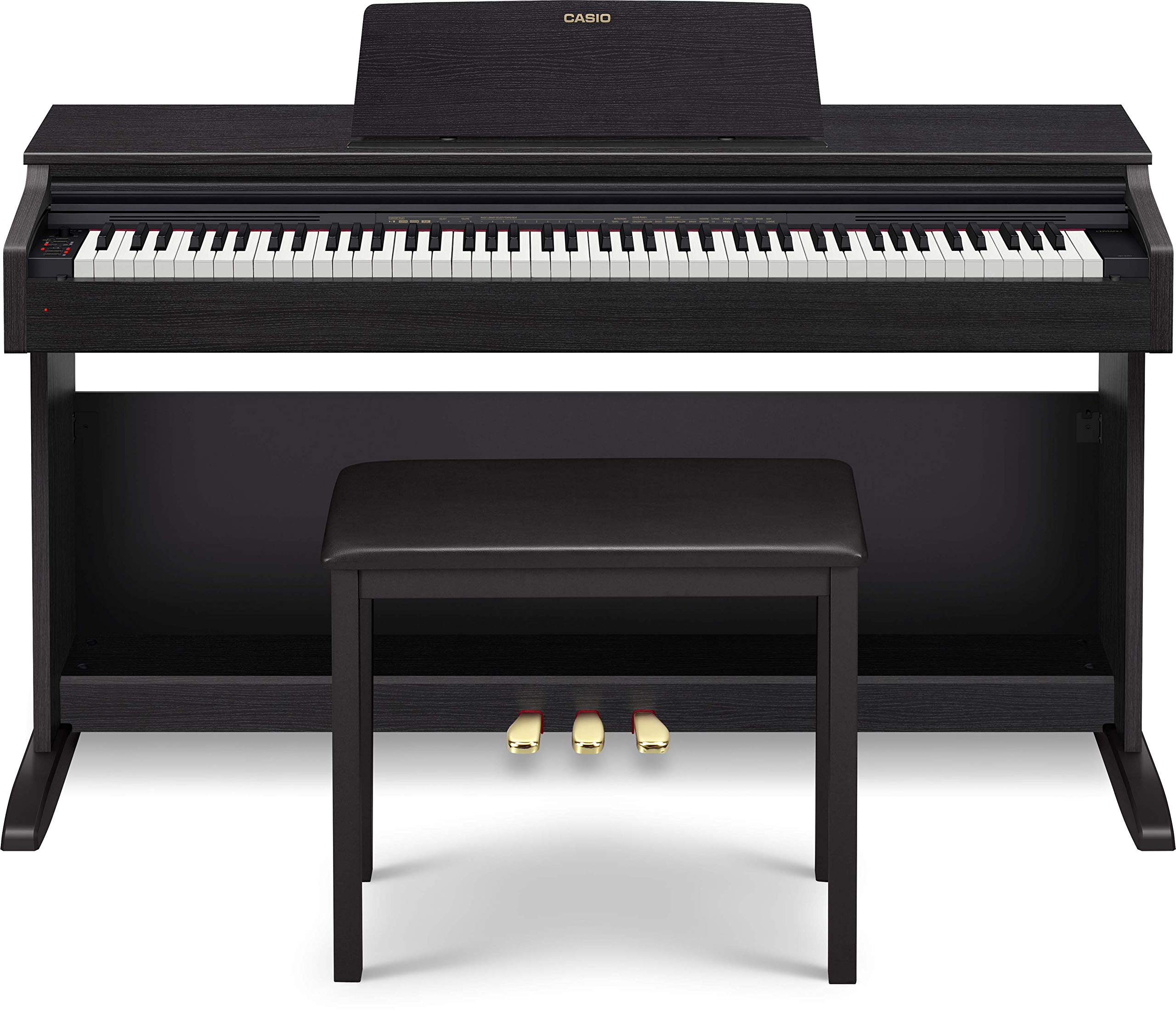 The Celviano family of pianos is synonymous with piano authenticity. iteen a traditional grand piano is impractical, players around the world delight in the natural sound and touch of Celviano instruments. The AP-270 delivers the quality and refinement you've come to expect from Celviano, in a compact-yet-elegant cabinet that compliments any space.A Pure Piano ExperienceThe AiR (Acoustic and Intelligent Resonator) Sound Source delivers incredible detail and realism. Advanced damper simulation recreates subtle nuances of a grand piano's soundboard, allowing you to hear the entire body of the instrument, not just the strings.Incredible new Piano ToneThe AP-270 includes a beautiful new New York grand piano Tone, with a wide dynamic range that is ideal for a wide variety of genres. Our award-winning German grand piano has also been improved, with a longer and more natural decay.Tri-Sensor II Scaled Hammer-Action KeysThe AP-270's accurately-weighted keys convey every nuance of your performance with authenticity and expression. With subtly simulated ivory and ebony textures completing the experience, the Tri-Sensor II keys offer a truly remarkable connection between you and your music.Concert PlayConcert Play consists of 10 recordings of orchestral performances, which sound phenomenal either through headphones or the built-in stereo amplification system. They can be slowed down without affecting their pitch. You can choose to listen to the piano part, or play it yourself. Enjoy the feeling of accompanying a symphony orchestra, right in your living room. You can learn your favourite songs with step-by-step lessons. Register yourself on the Casio website, and unlock one free month of access to Playground Sessions.