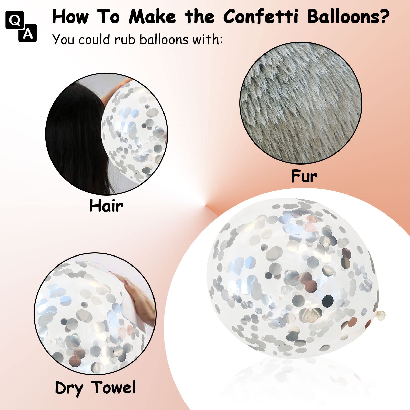🎈Safety and Use - Please Do not over-fill the balloons and avoid sunburn, overheating and sharp objects. You can pulld the balloon tail tightly to let it last longer after the balloon is knotted. Rub on hair or the carpet will help keep the balloons confetti stick to the balloons side, which will make the balloons look more beautiful. Our latex balloons are reusable. ​If you have any questions, please feel free to contact us! Your problem can be solved within 24 hours.