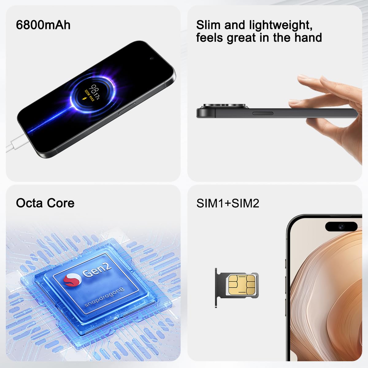 Powered by the advanced Snapdragon 8cen2 processor, the unlocked 5G phone redefines high performance, ensuring that you enjoy lightning-fast speeds and seamless multitasking on your phone. Experience vivid visuals on this unlocked phone's impressive 6.8-inch FHD screen, providing an immersive viewing experience for all your favorite content, whether you're streaming video or browsing your smartphone. Capture the moment with the 48MP + 108MP Dual Camera System, perfect for crisp selfies and breathtaking landscapes, making it one of the best unlocked Android phones on the market. With a massive 6800 mAh battery, this unlocked phone can be used for long periods of time without worrying about charging, making it perfect for those looking for a reliable phone around the clock. The supports Dual SIM Dual Standby for seamless management of personal and professional contacts, as well as enhanced security with Face ID functionality, making this unlocked phone stand out from the crowd.