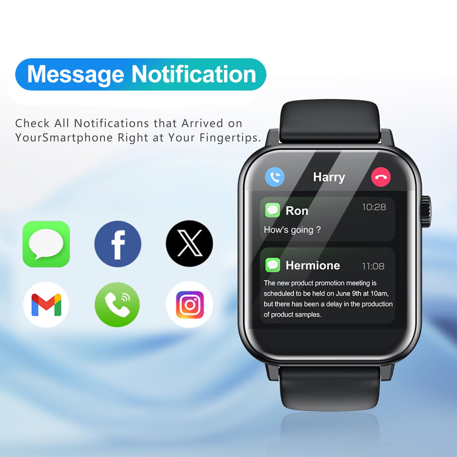 [ Make/Answer Calls & Message Notifications ] - This smart watch features advanced Bluetooth technology, enabling you to make and receive calls with crystal-clear audio quality. Stay connected with instant notifications from phone message or your social APP- perfect for those times when checking your phone isn't convenient, such as during workouts, meetings, or other daily activities.