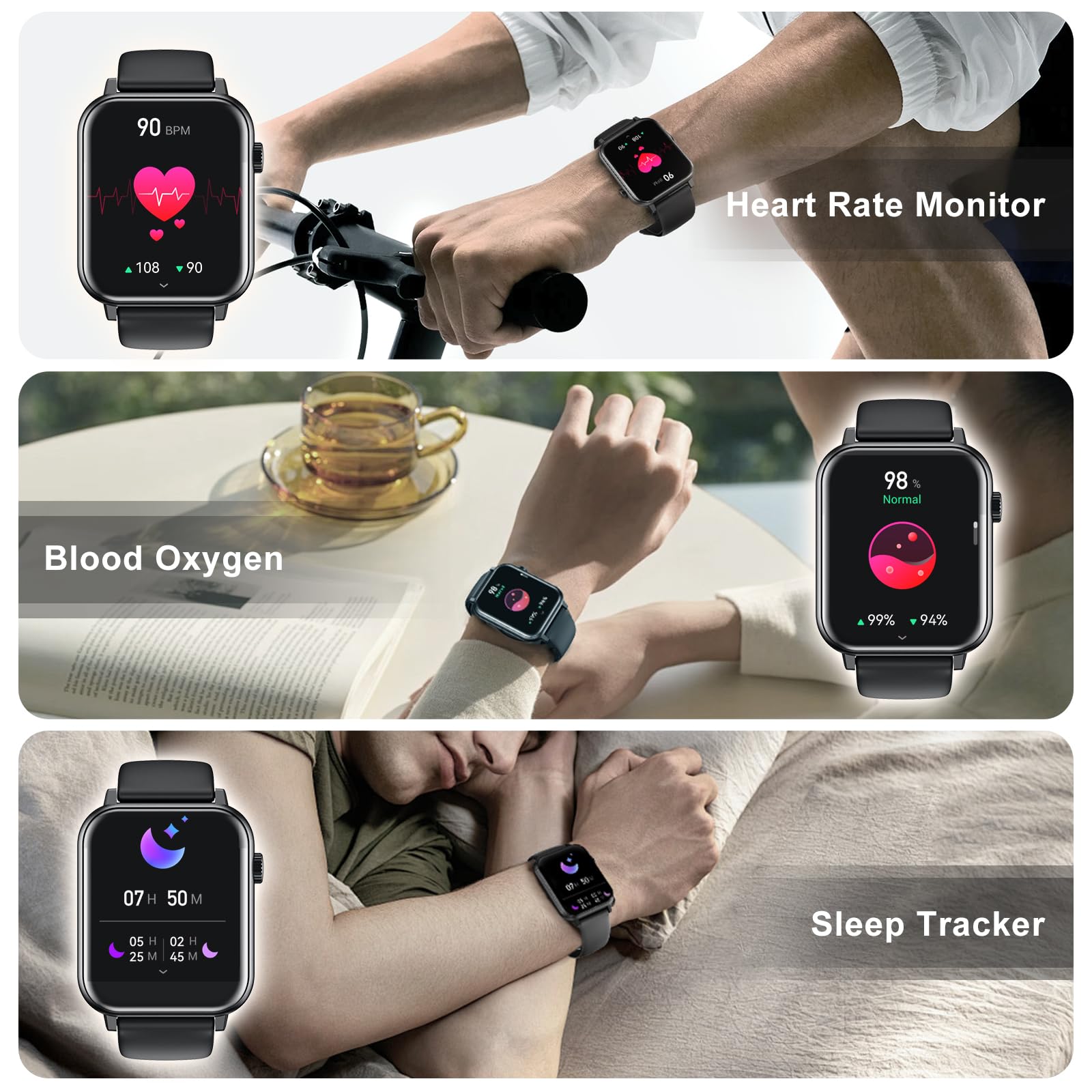 [ Comprehensive Health Monitoring Fitness Tracker ] - Equipped with high-performance optical sensors, this fitness watch continuously tracks your daily activities, monitors heart rate, measures stress levels, and analyzes sleep patterns. The companion app provides detailed health reports and valuable insights, helping you understand your wellness trends and make informed adjustments to achieve your health goals.