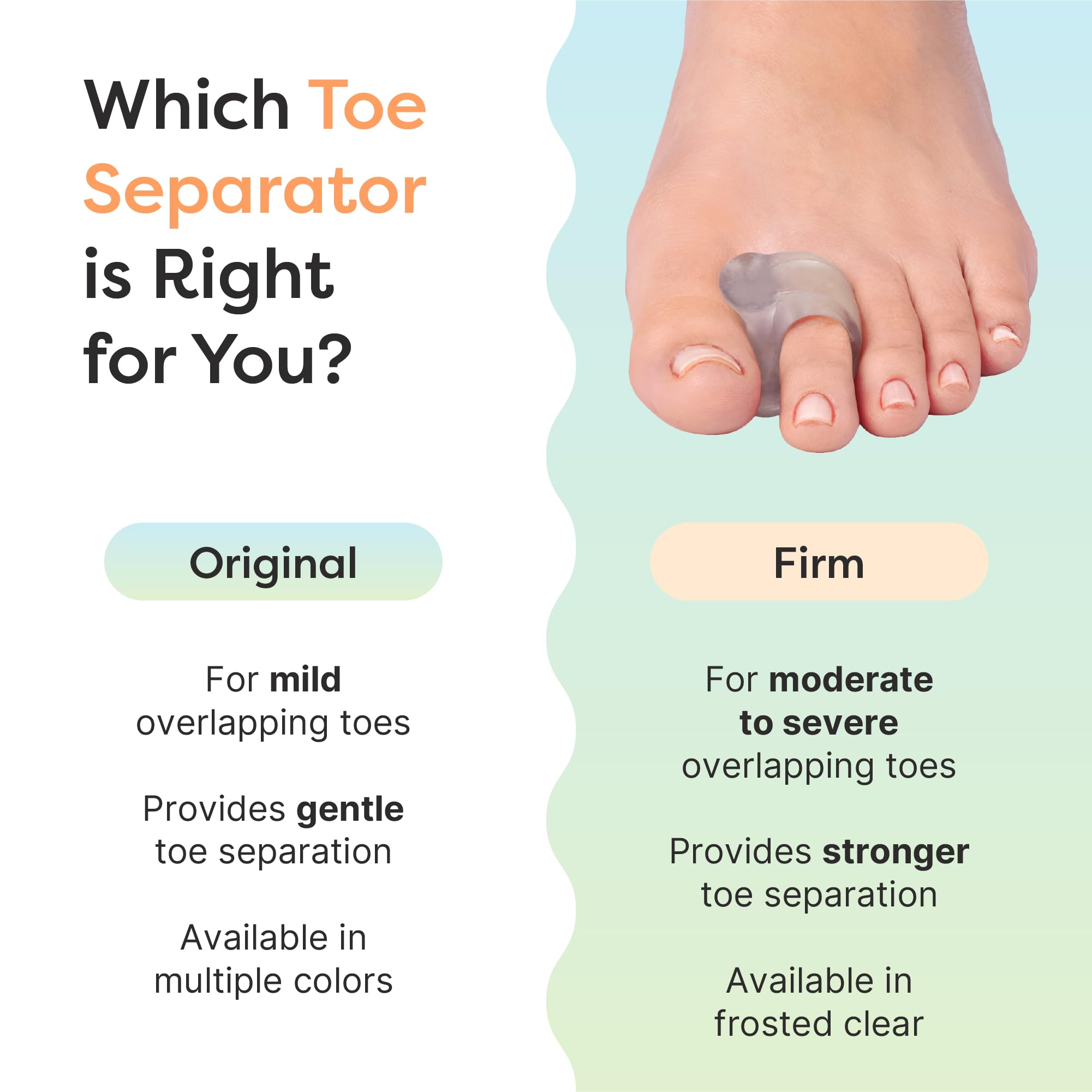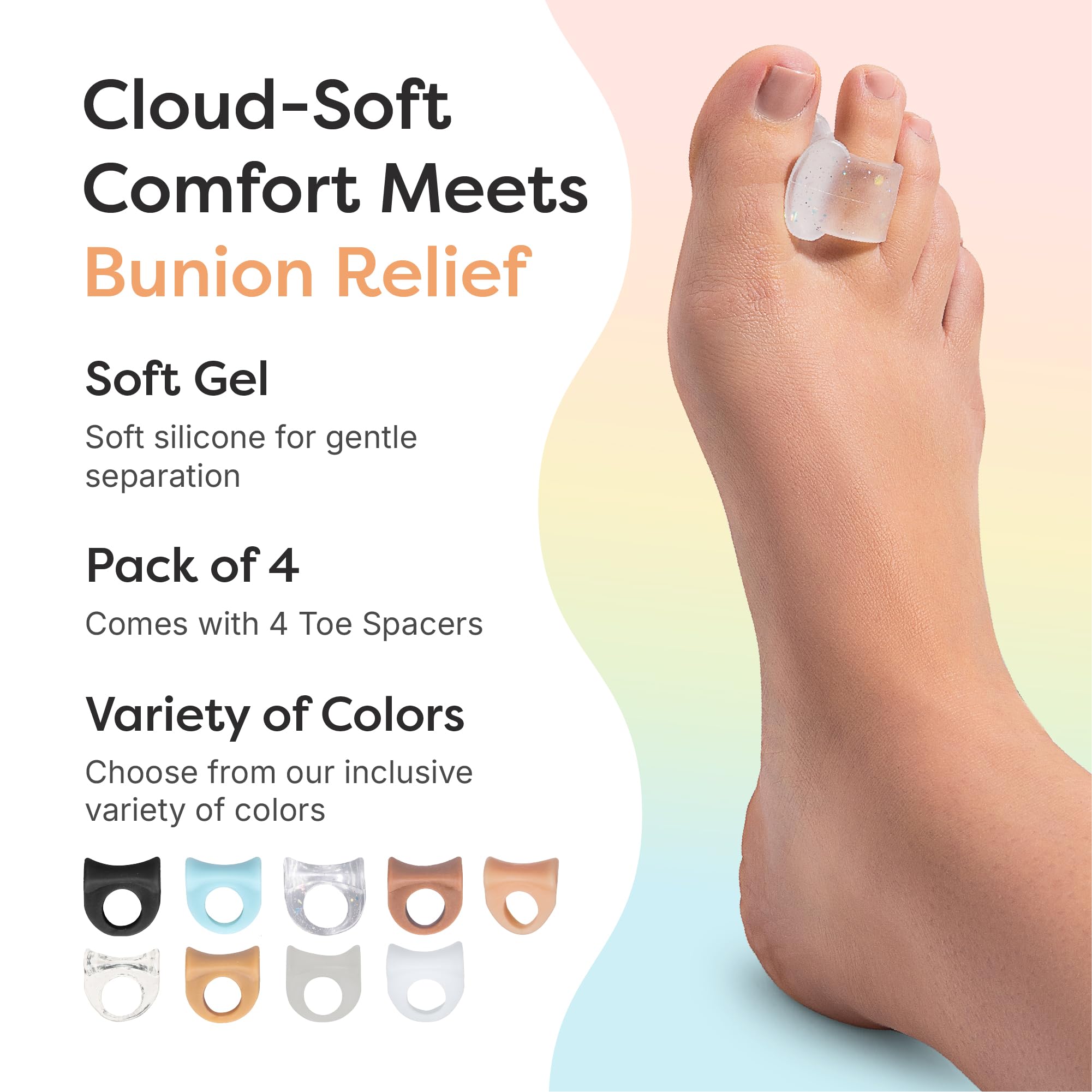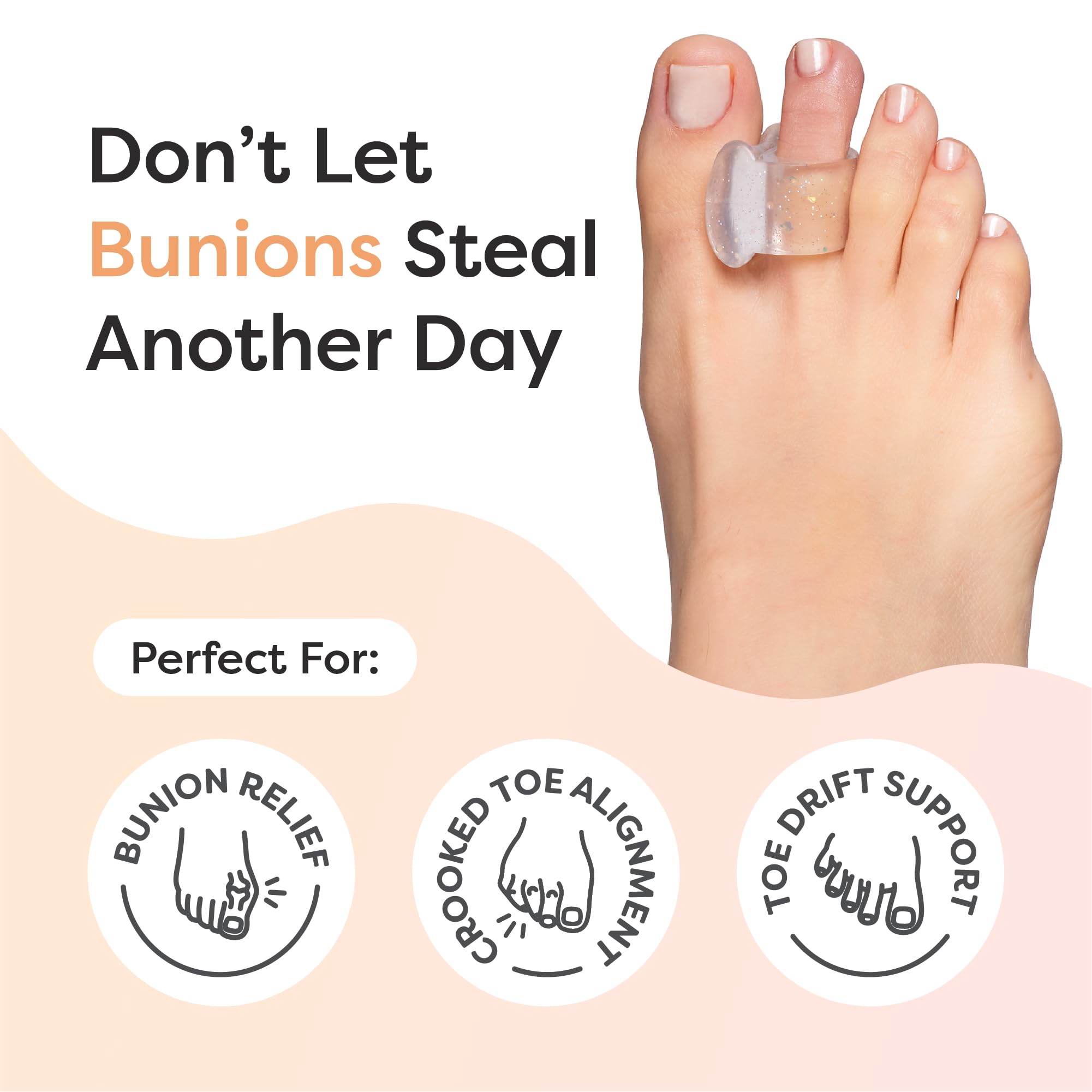 Comfortable and Durable - The soft, flexible gel toe ring conforms to your toes, fitting comfortably in any shoes and allowing you to stand or walk for longer in comfort. Our toe separators can be worn during the day and at night to provide continuous toe pain relief.
