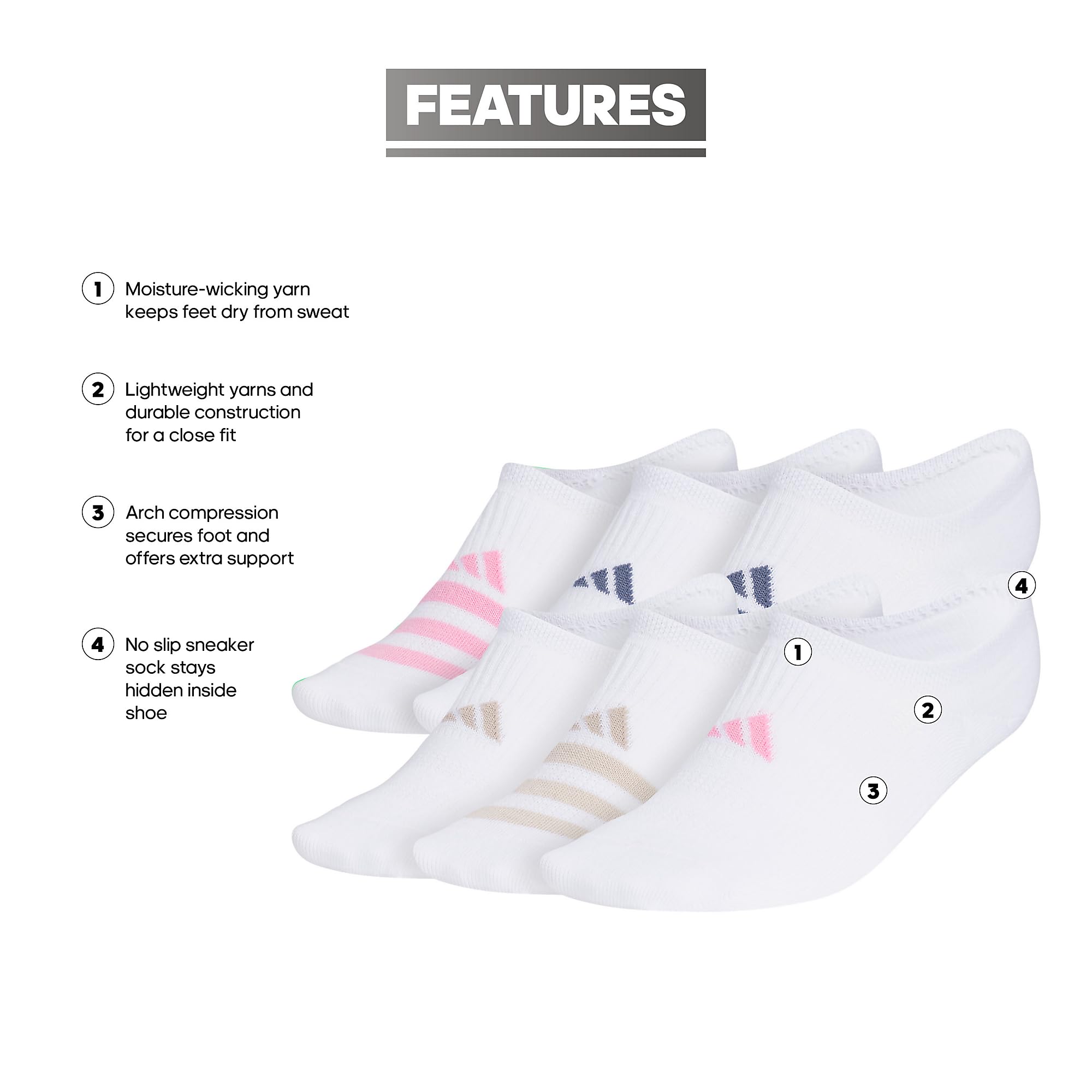 Description Designed for a sleek, ultra low-profile fit, these no show socks for women offer comfort and style. Crafted from moisture-wicking yarn, they keep your feet dry from sweat while providing a lightweight feel. Great as short socks for women, these low cut socks women love are built with durable construction for a snug fit. The engineered arch compression provides support, making them a great no slip no show socks option. With the added benefit of staying concealed inside your shoe, these low socks for women deliver great performance. Each set includes six pairs of women's no show socks so that you have enough to complement any outfit.