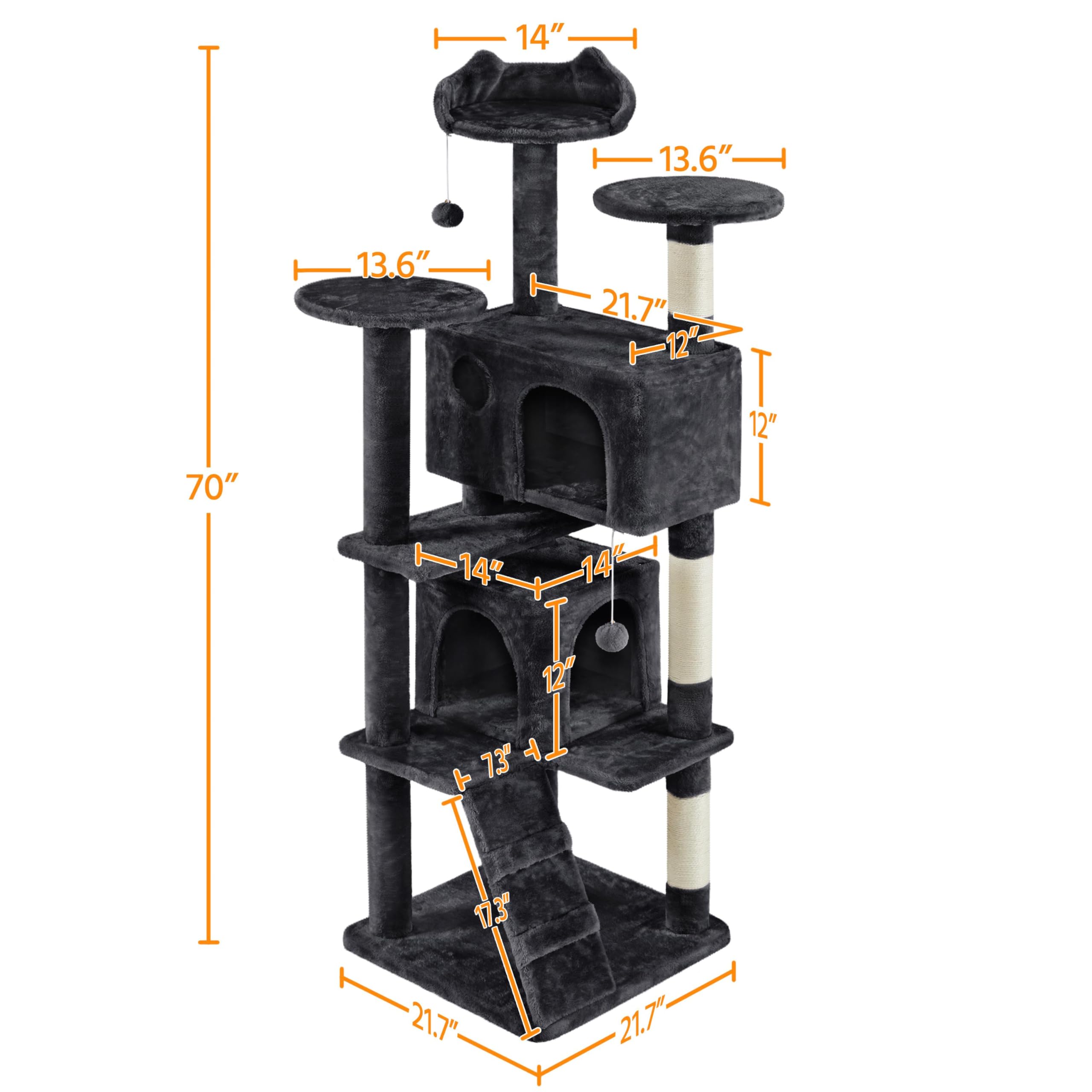 MULTILEVEL DESIGN: Featuring multiple levels, this cat tree perfectly meets cats' needs for playing, lounging, sleeping, and exercising. A top cat-ear-shaped perch and two round platforms are good spots for viewing. Two cat condos are absolute personal spaces, suitable for sleeping