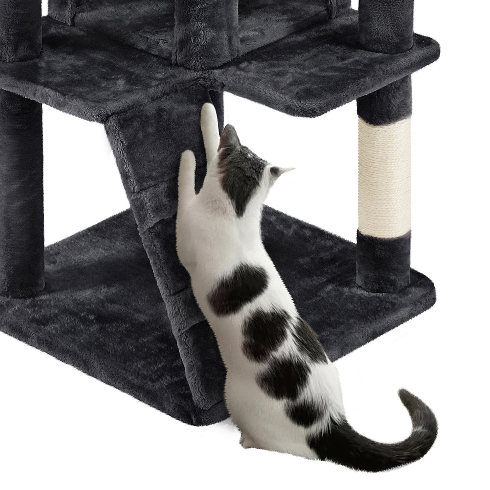 SECURITY & PROTECTION: Considering the cats' habits and characteristics, we add an anti-toppling plastic strap attached to the middle board for better stability, through which you can anchor the cat tree to the wall