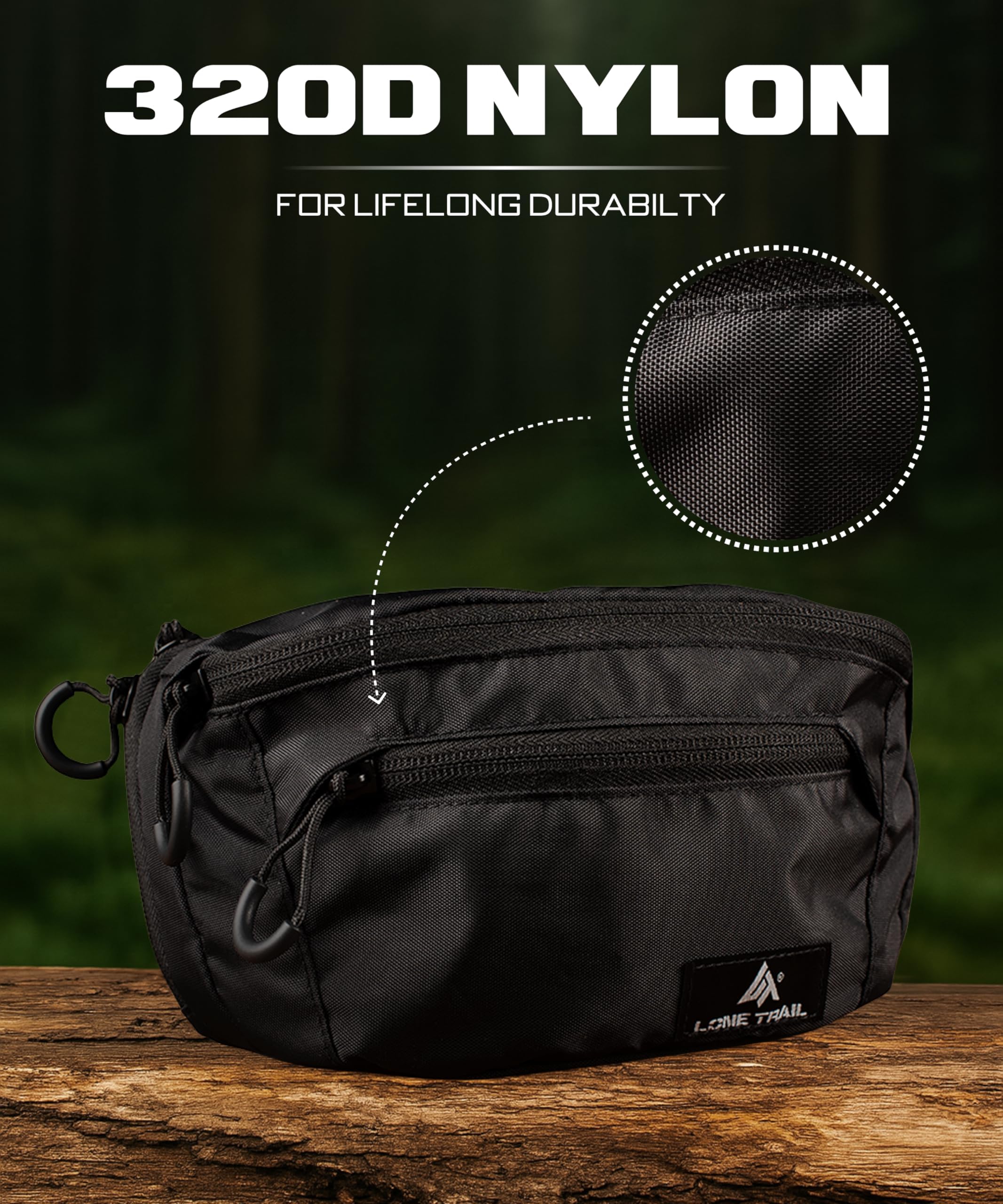 Waist pack with rugged hardware and smooth zippers: Wide zip tape makes a smooth zip path, while durable buckles and ergonomic webbing take on daily wear. A fanny pack for men that’s built for force, not fashion fluff.