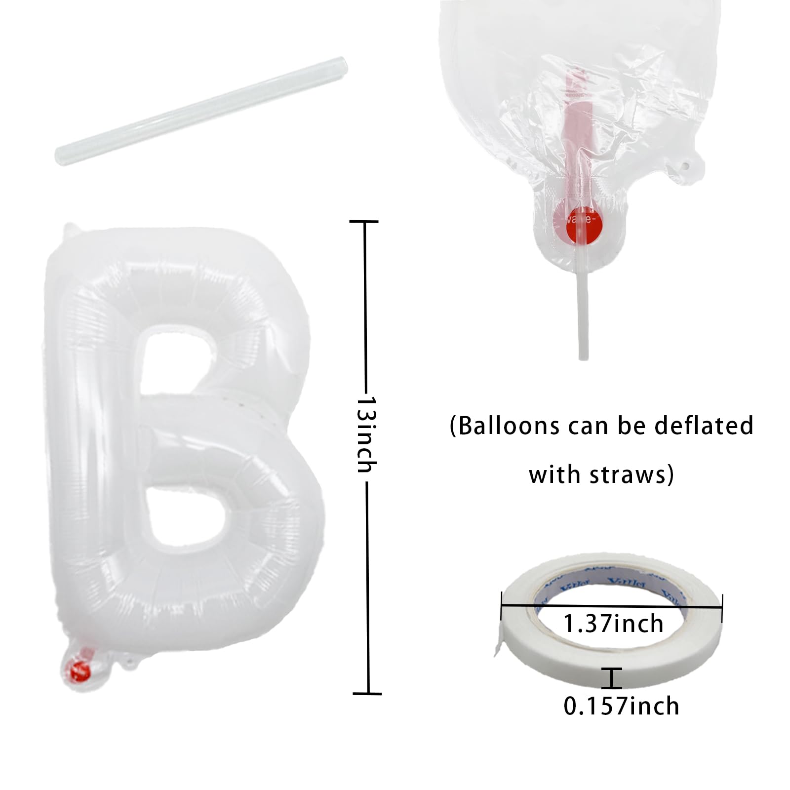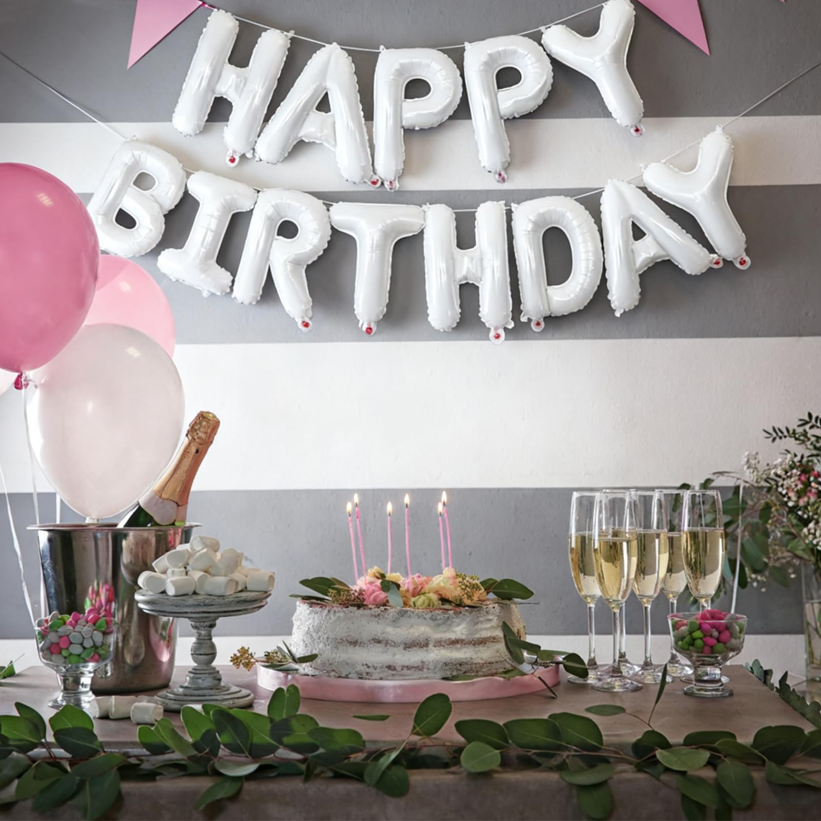 Complete Celebration Kit:13 independent foil letter balloons (spells HAPPY BIRTHDAY), with ribbon & reusable straw. Perfect white birthday decorations for men/women - combines latex birthday balloons for instant party transformation.
