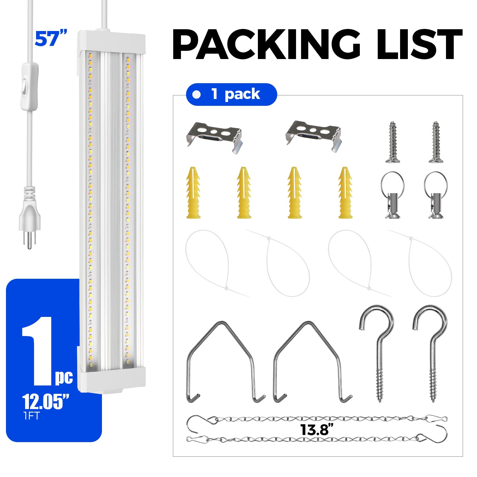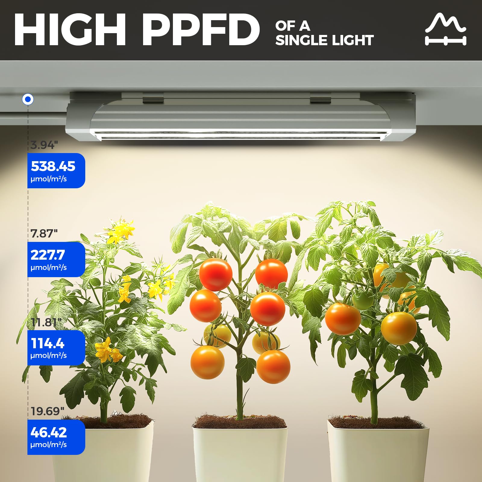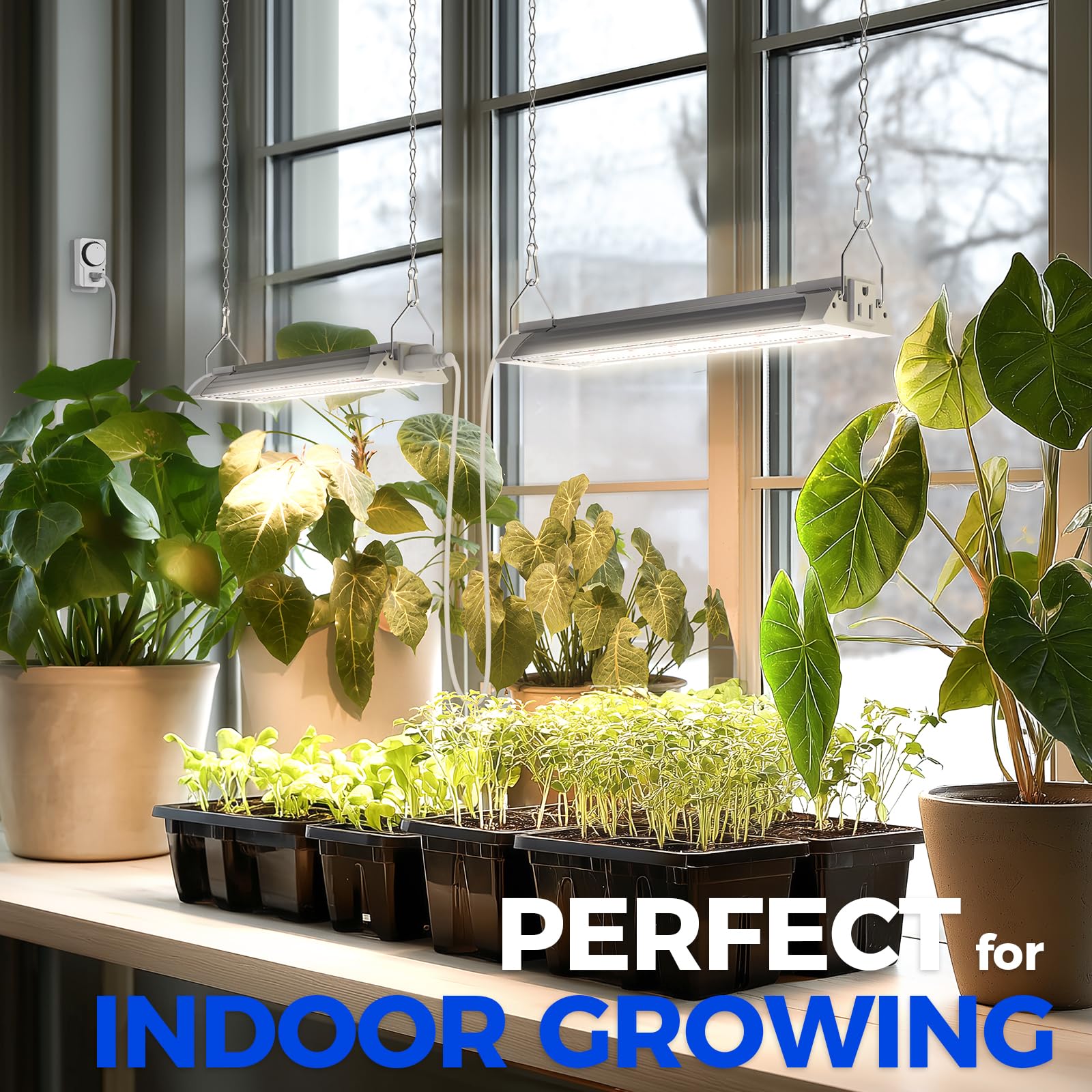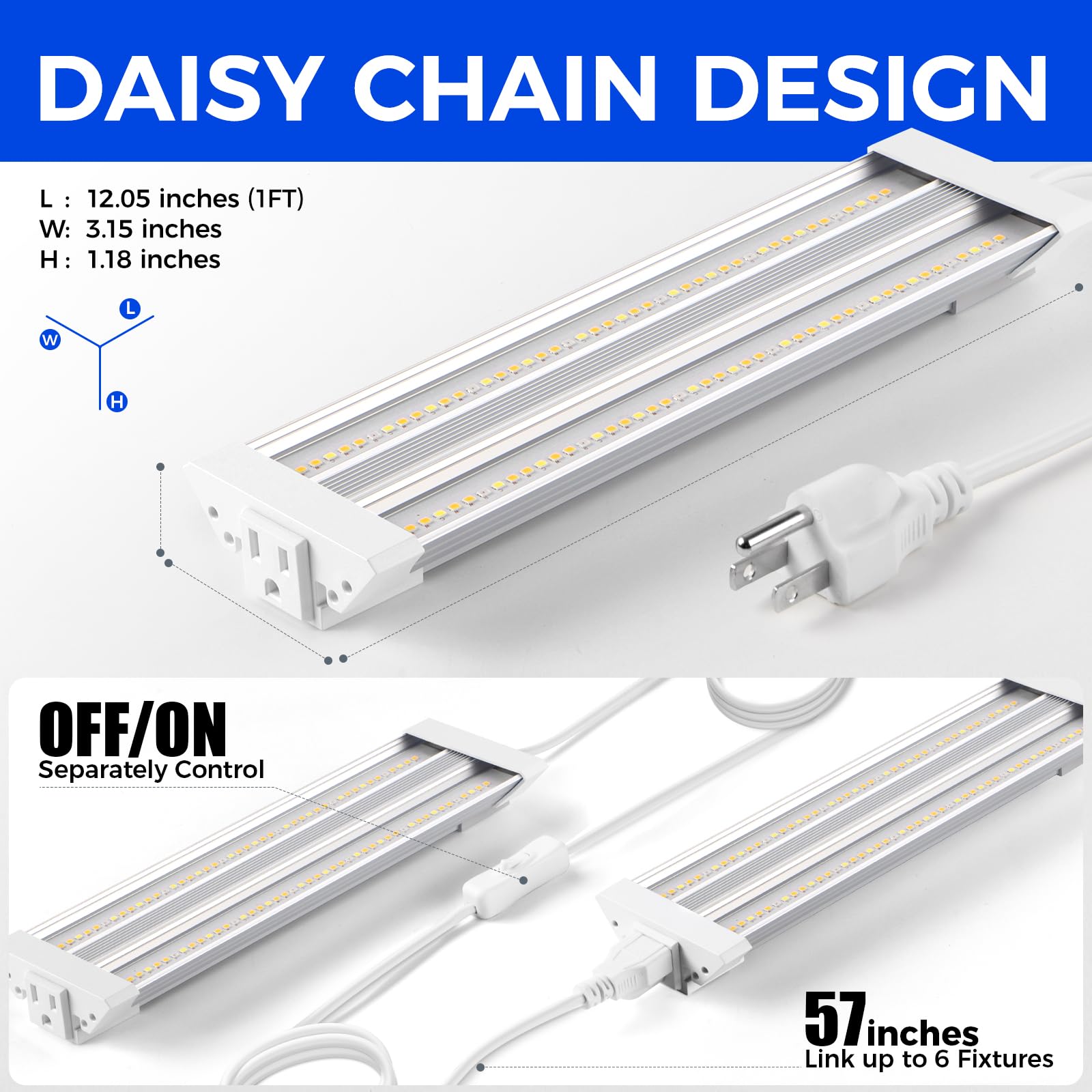 Linkable Design & Full Light Coverage: The LED grow light supports daisy chaining up to 6 lights, each with 57 inches power cords and individual on/off switches for customized lighting. This flexible setup ensures comprehensive light coverage, making it ideal for indoor, plant shelves, vegetable, greenhouse