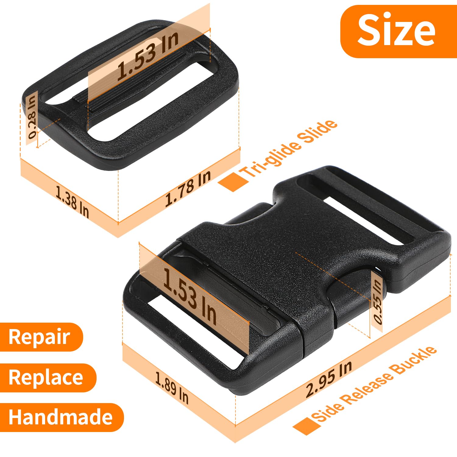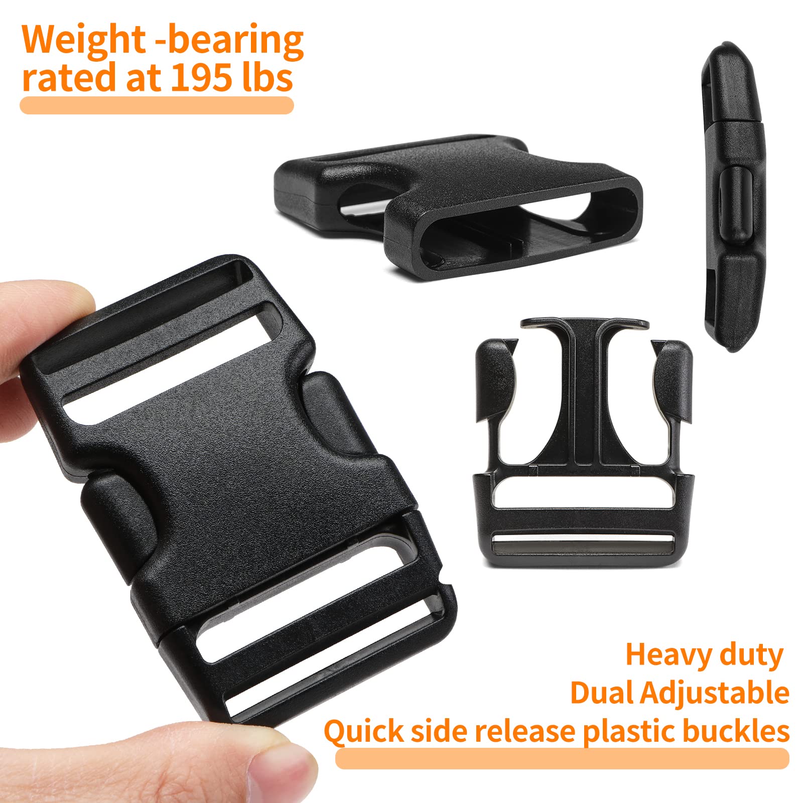[Dependable Design] Sturdy 1-1/2-inch plastic parachute buckle offers a tensile strength of 195 lbs. Ensure security with the anti-slip tri-glide slide clip, providing adjustability and a secure strap lock