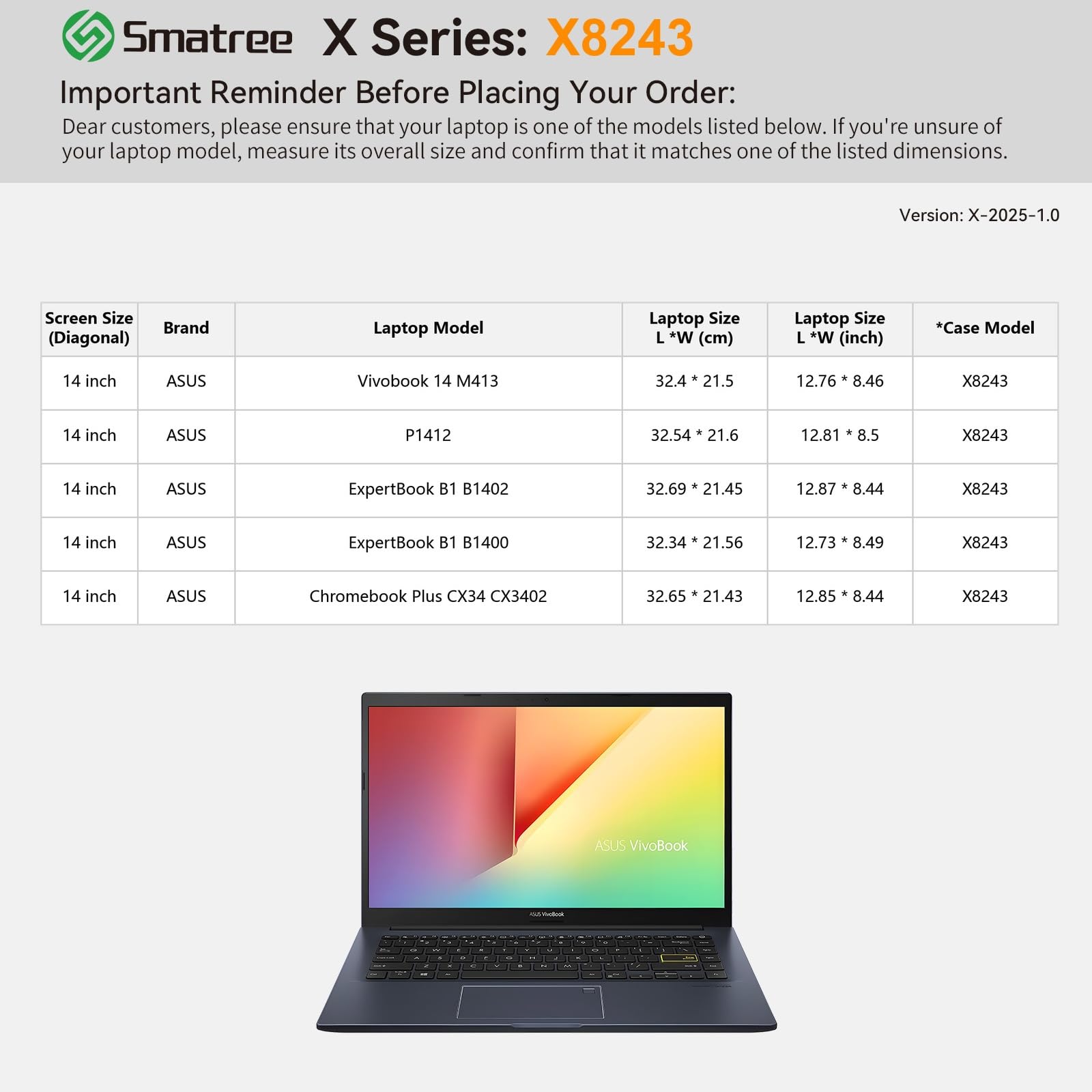 Compatibility: designed to perfectly fit for 14 inch ASUS ExpertBook B1 B1402/B1400; 14 inch ASUS Chromebook Plus CX34 CX3402; 14 inch ASUS Vivobook 14 M413; 14 inch ASUS P1412