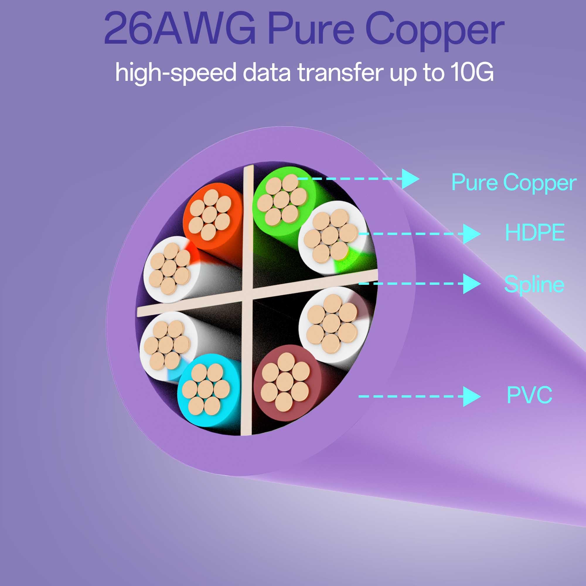 High Performance : Cat 6 ethernet cable support up to 10 Gbps and 550 Mhz application. Cat6 patch cable are made of 26AWG pure copper with reliable performance. Ethernet cables compliant with ANSI TIA 568.2 D standard.
