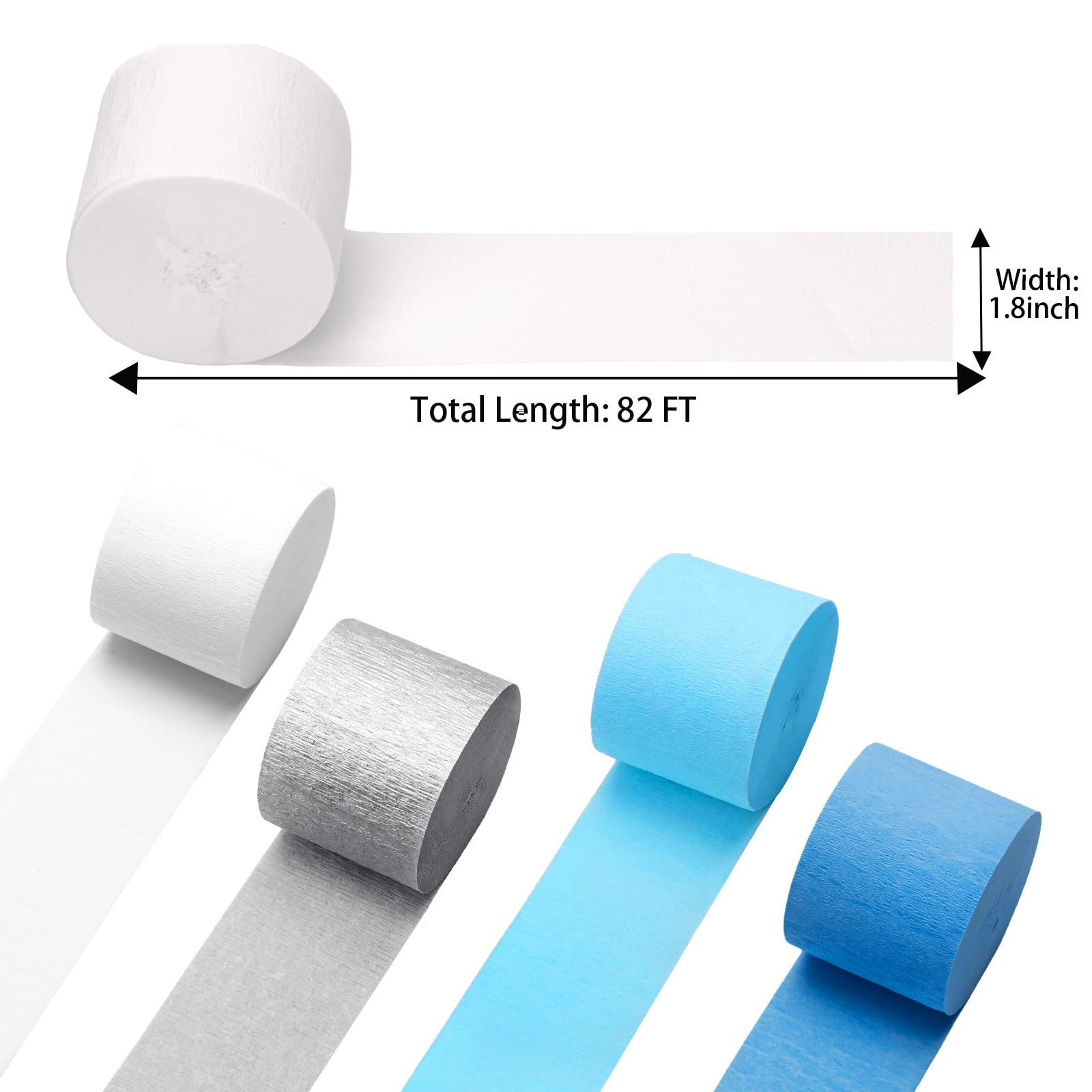 Premium Material: This Creper Streamers made of thick Crepe Paper, non-fading. Each Crepe Paper Roll Streamer is 30% thicker than the average,our Crepe Paper is 22 g/m², ordinary (17 g/m²), no unpleasant smell, lightweight,you can use them both indoors outdoors without worrying about damage. nursery, christening decoration for parties, events, photo booths. backdrop, festival celebration decorations, photography background, dessert table decor birthday party streamers