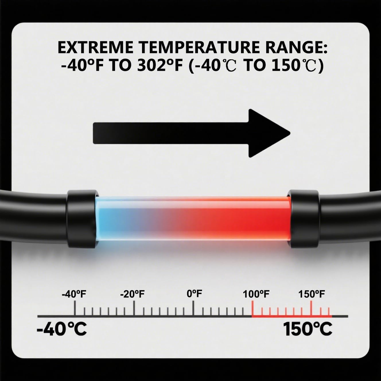 ⭐Working Pressure: 300 PSI. Burst Pressure: 1800 PSI. Temperature range: -40°F to 302°F(-40°C to 150°C).