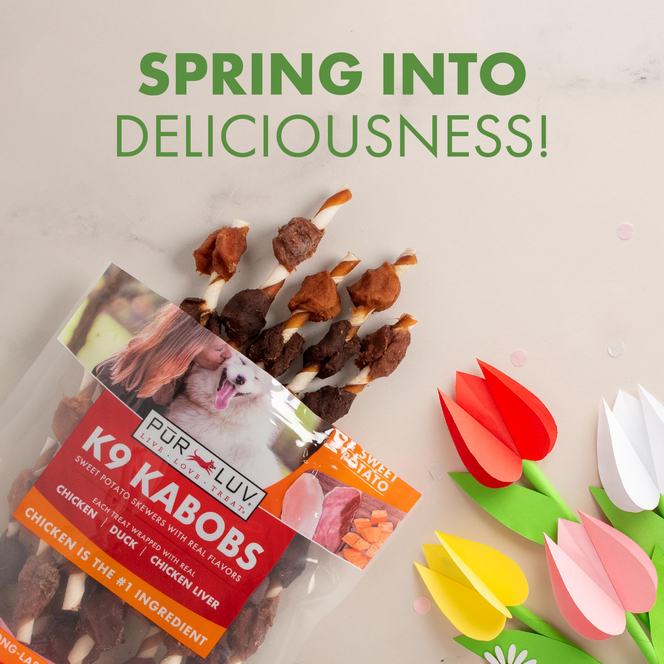 Packed with Flavor: The Pur Luv Triple Flavor and Sweet Potato K9 kabobs dog treats pack three delicious flavors into a single treat