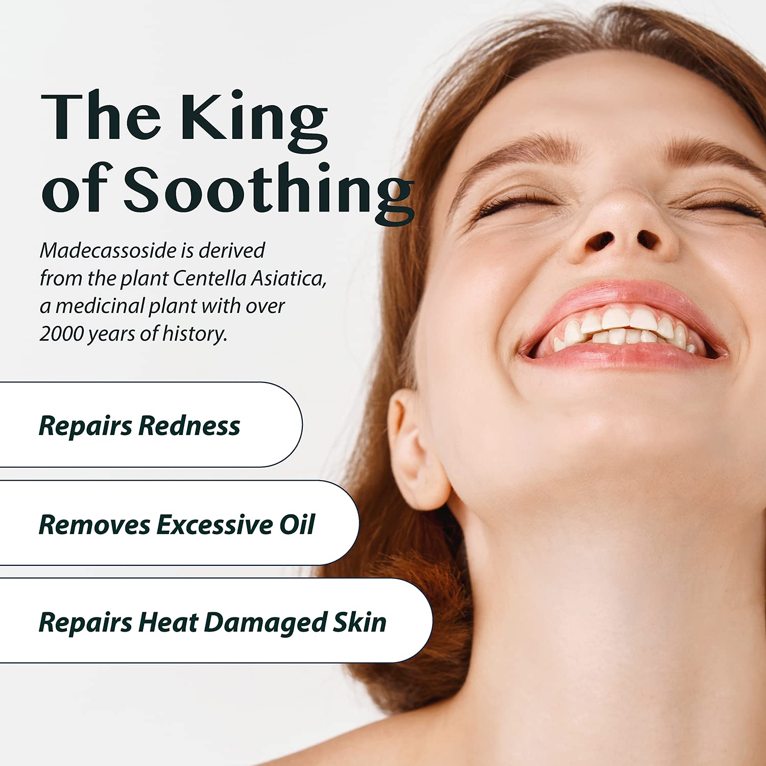 MADECASSOSIDE - Care for your skin with nature's help - This skincare formula features Madecassoside, a natural compound found in Centella Asiatica, which helps soothe dry skin.