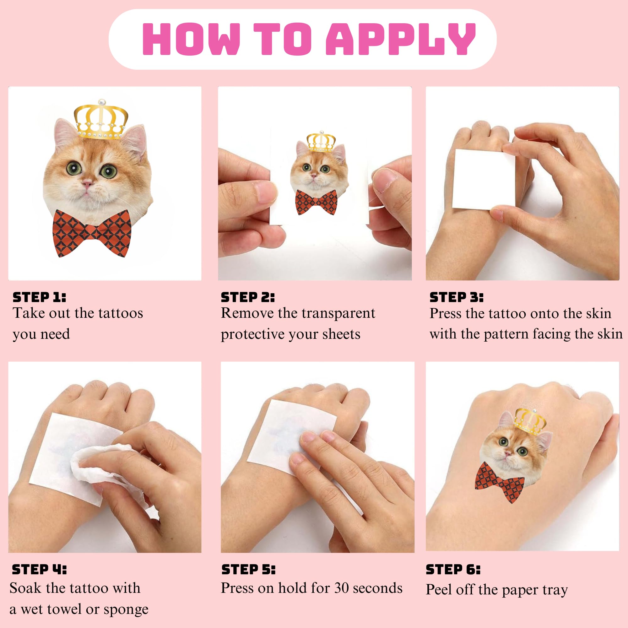 DURABLE WATERPROOF AND REMOVABLE: Long last for 3-5 days, depends on how many showers you take and how many times you scrub the tattoo with soap and water,Easy to apply in 10-20 seconds with just water and easily removed by rubbing alcohol, body oil, olive oil.Great fun for any cat and animals birthday supplies.