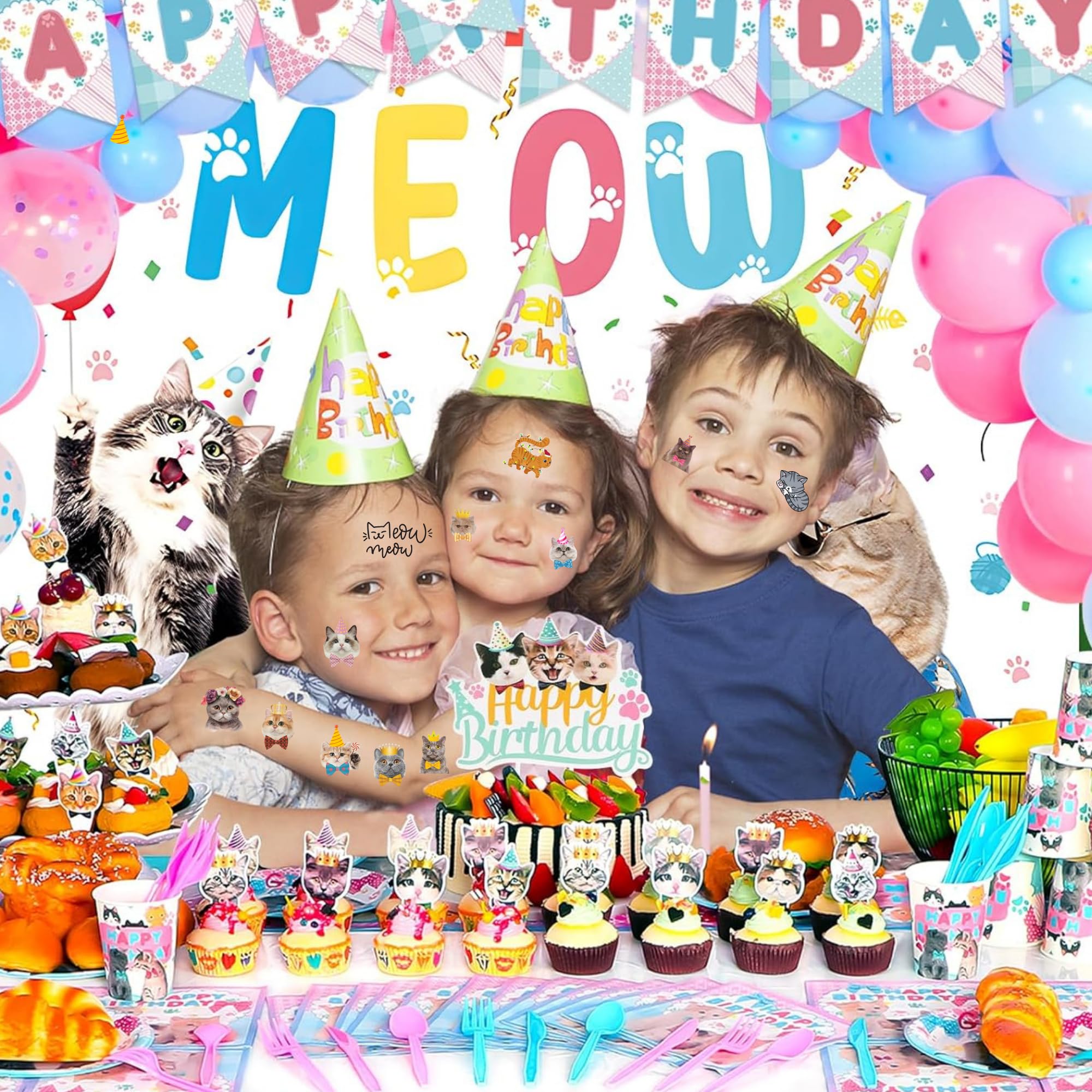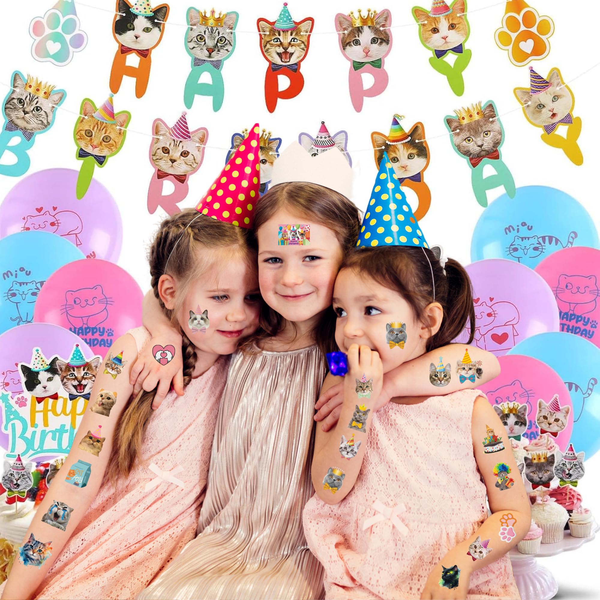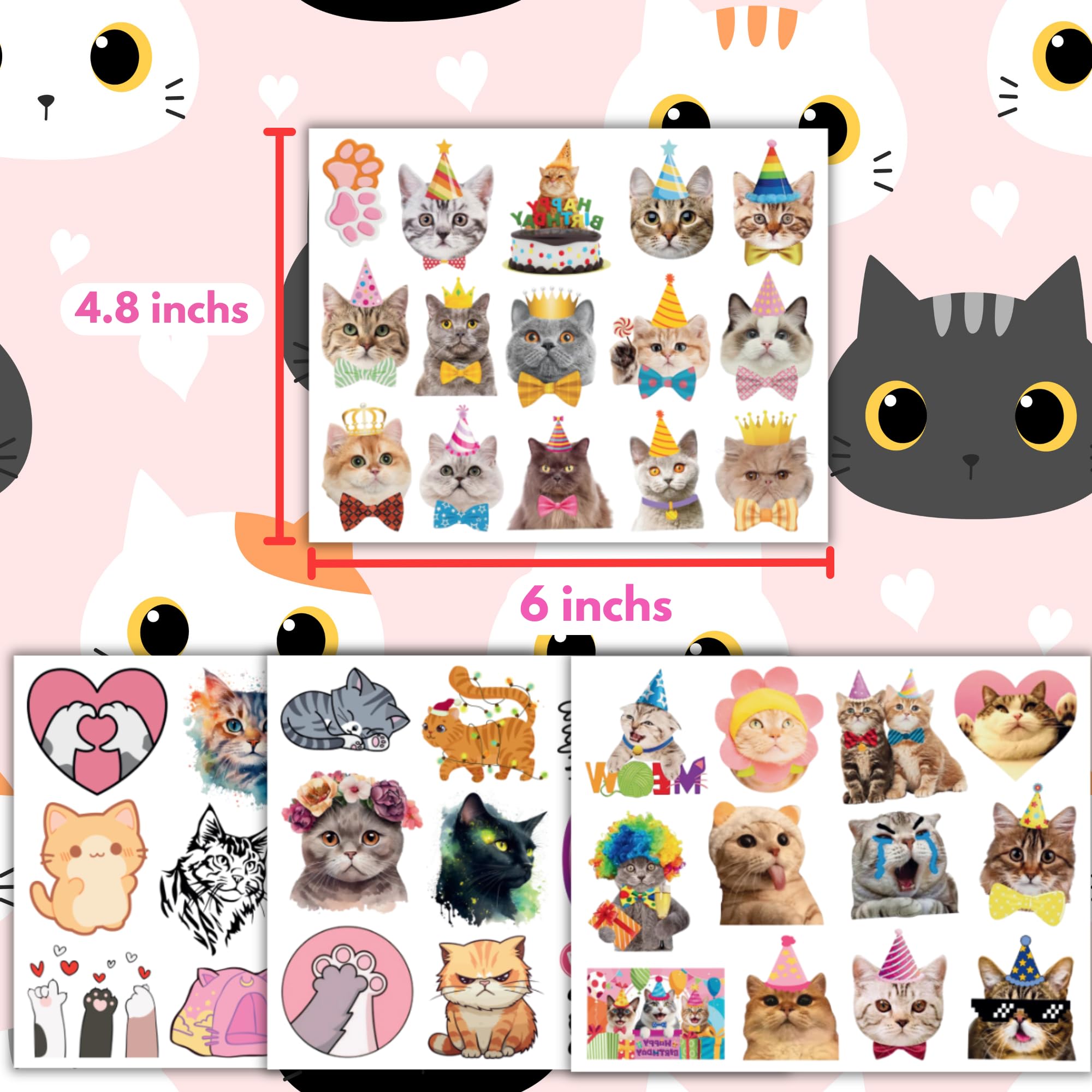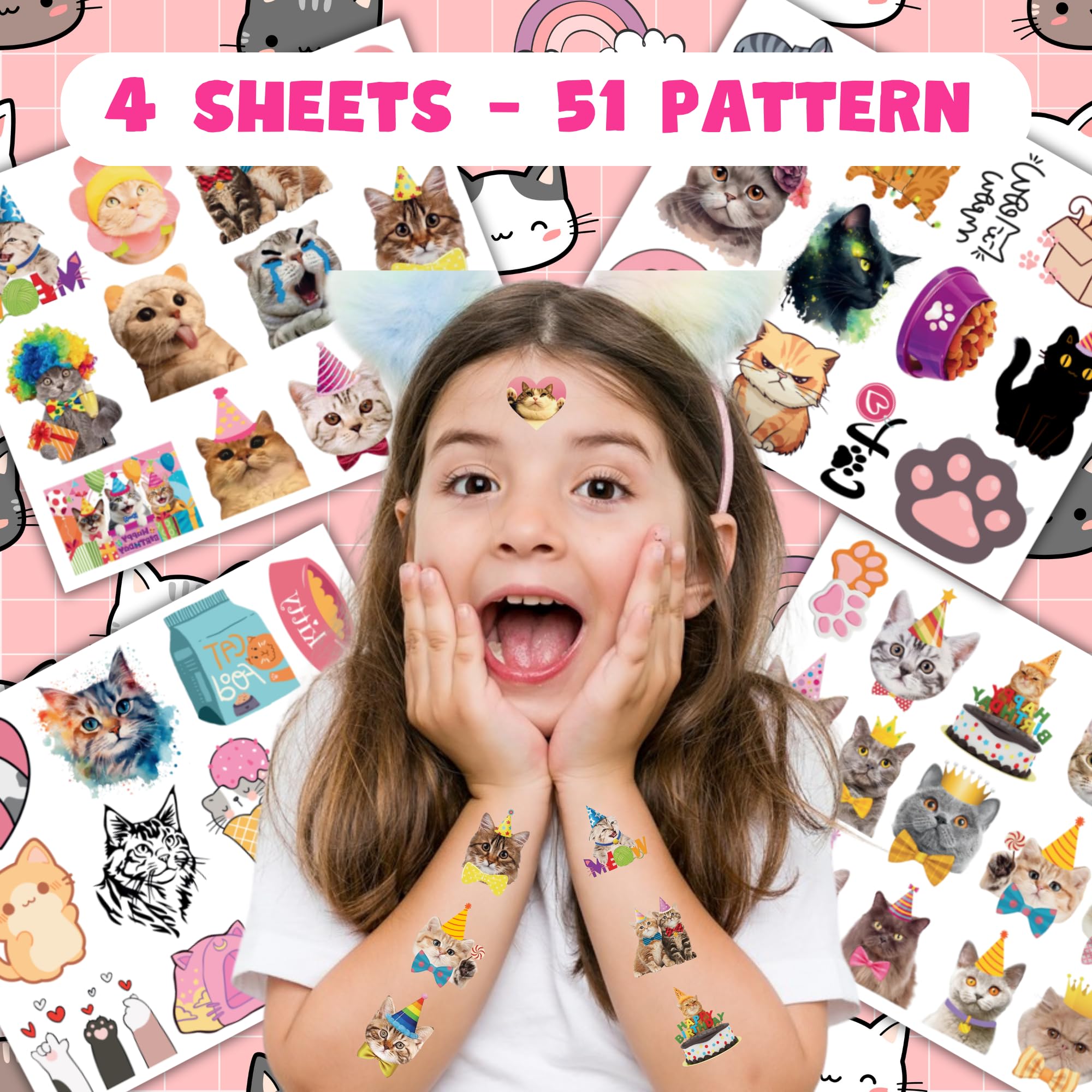 NECESSARY CAT THEME PARTY ACCESSORIES: 50pcs Cat themed birthday tattoo,each sheets measures 6 x 4.8 inches made need to cut, which made it easy to just clip them into the goodie bag. Perfect for face, body, cheek,arm, hand ,ankle or anywhere you want a touch of glamour!