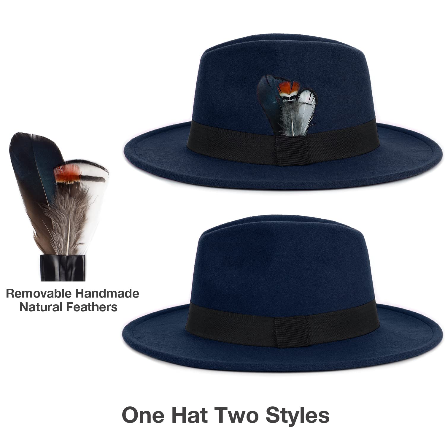 Classic & Timeless Fedora - Classic felt hat shape with black band, Make you so trendy, Elegant and charming.