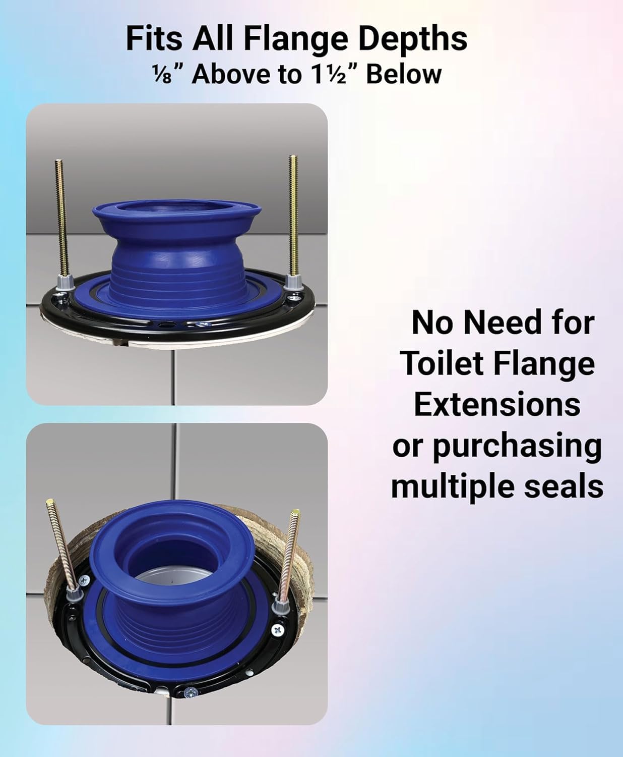 No Guess / Mess | Eliminate leaky wax toilet ring seal with the One n Done toilet seal that self-adjusts to ANY toilet flange depth. No toilet flange extension kit, toilet spacer, wax ring for toilet, toilet flange reamer, or additional sealants required. The toilet seal ring grips the bottom (horn) of the toilet for the ultimate toilet sealer around toilet base. For a perfect seal that is much better than wax toilet seal.