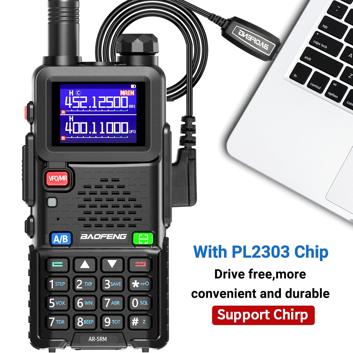 Professional Ham Radio:The receiving frequency range:108MHZ-136MHZ,136MHZ-174MHZ,220MHZ-260MHZ,350MHZ-390MHZ,400MHZ-520MHZ,the transmitting frequency range:144MHZ-148MHZ,420MHZ-450MHZ. ,Up to 999 storage channels and a 1.77 inch large color screen, making operation more convenient.The enlarged walkie talkie body size is designed ergonomically to enhance user feel.Support Chirp.FCC ID:2AJGM-5RM