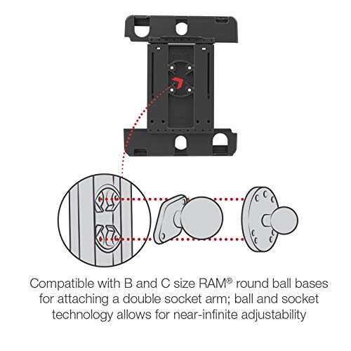 Compatible with B and C size RAM round ball bases for attaching a double socket arm; ball and socket technology allows for near-infinite adjustability