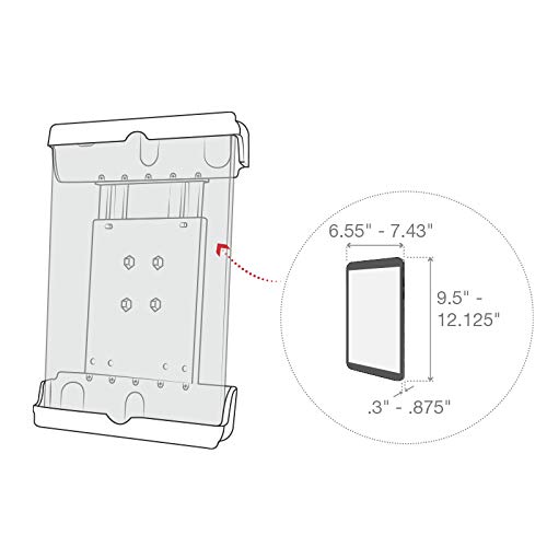 Holder Dimensions: Height Range: 9.5" - 12.125", Width Range: 6.55" - 7.43", Depth Range: .3" - .875"