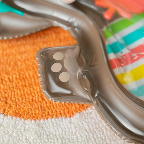 It’s monkey see, monkey chew with the Hungry Monkey water mat from Bright Starts! Simply fill the center of the play mat with water and blow up the outer rim with air to let the sensory play begin. Your baby will love to “feed” the hungry monkey by moving around the floating fruit pieces. You’ll love exposing your baby to water play without the mess! The chunky monkey’s tummy features 3 floating fruit pieces: a banana, pineapple and strawberry. During seated play, baby can work on muscle development while making the fruit pieces move around inside the squishy belly – introducing cause & effect! The monkey mat’s compact size is perfect for travel and doubles as a high chair toy for early seated play. The water plug makes filling and draining the mat quick and convenient, and cleanup is a breeze with the mat’s wipeable PVC material. Just drain the water and air, wipe down the mat, and fold up for storage. Ideal for newborns and up. 16.13" (H) x 13.61" (W) x 1.5" (D)