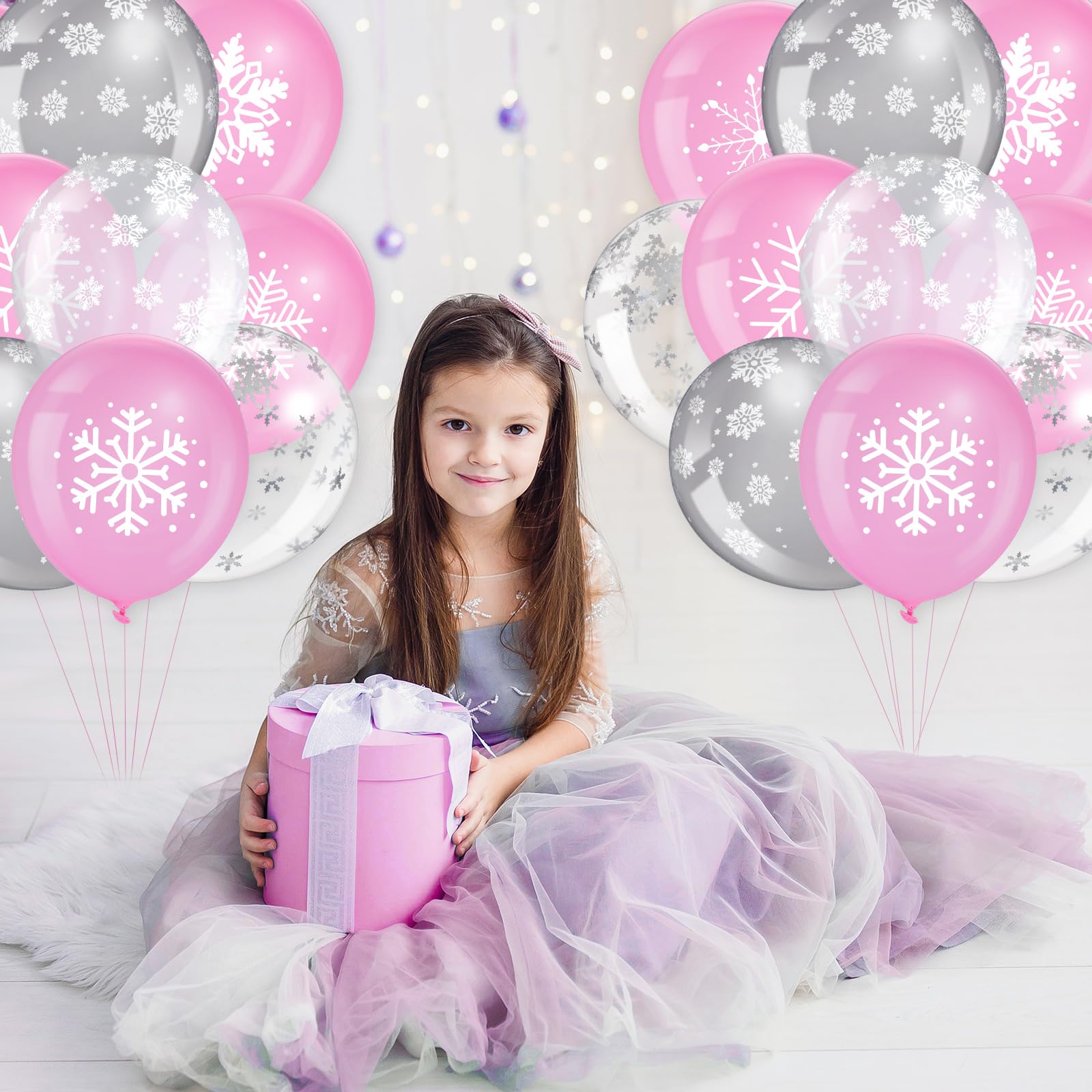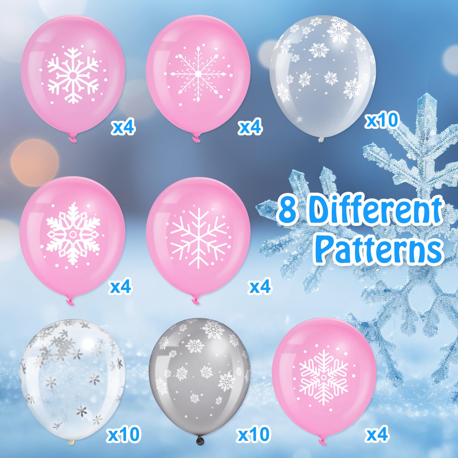 Fun and Exciting Package: the package includes 50 pieces winter onederland balloons which are in a variety of snowflake balloon types, such as snowflake clear balloons, glitter confetti balloons, and snowflake latex balloons; Our winter balloons set ensures a festive and joyful environment, building excitement and fun party attendees