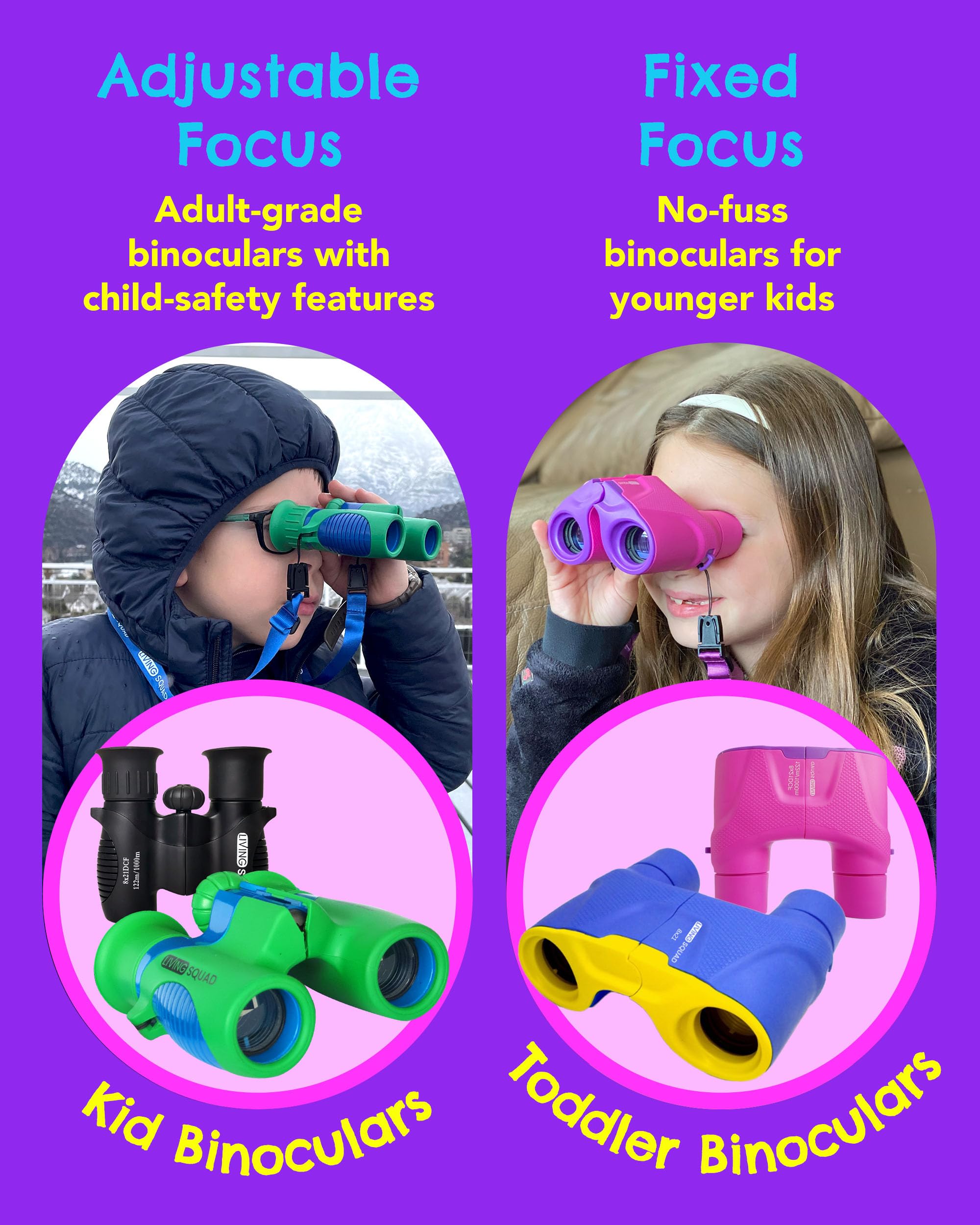 Are you tired of buying binoculars for your kids that break the first time they fall? others may look the same, but we assure you our binoculars are premium quality! why? Easy to focus - high quality lenses and 8x zoom give your child an incredible vision Easy to carry - you get a case that goes on your child's belt, A neck and hand strap Easy cleaning - you get a microfiber cleaning cloth so your lenses won acute; T get scratched get yours now, add to cart today!