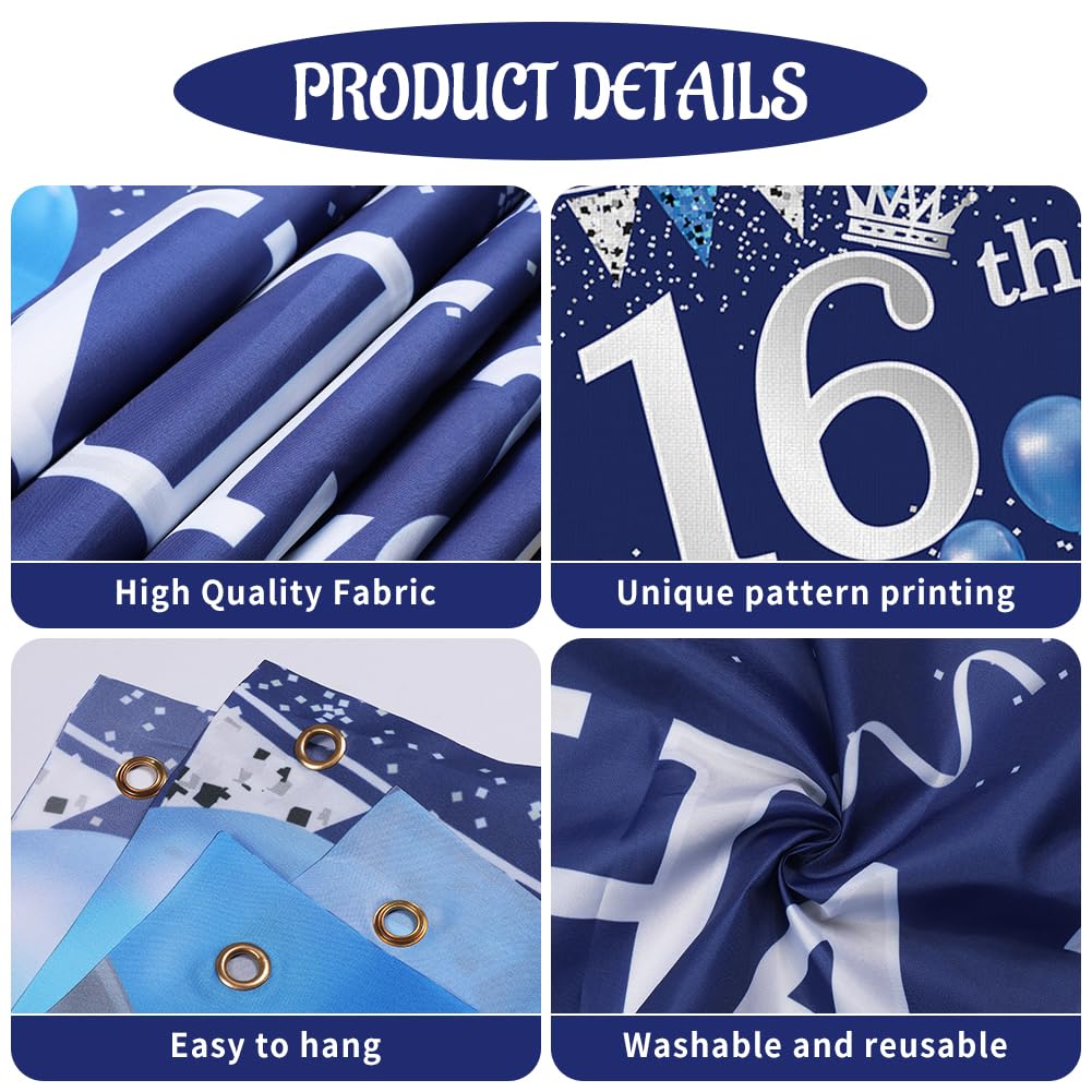 🎁【Wide Applications】Our blue and silver 16th birthday backdrop banners and balloon set are nice for parties. It can as a photo booth backdrop for you to take photos with your family and friends. Great for 16th birthday party theme, 16th anniversary party or other occasions, and create a joyful party atmosphere for you